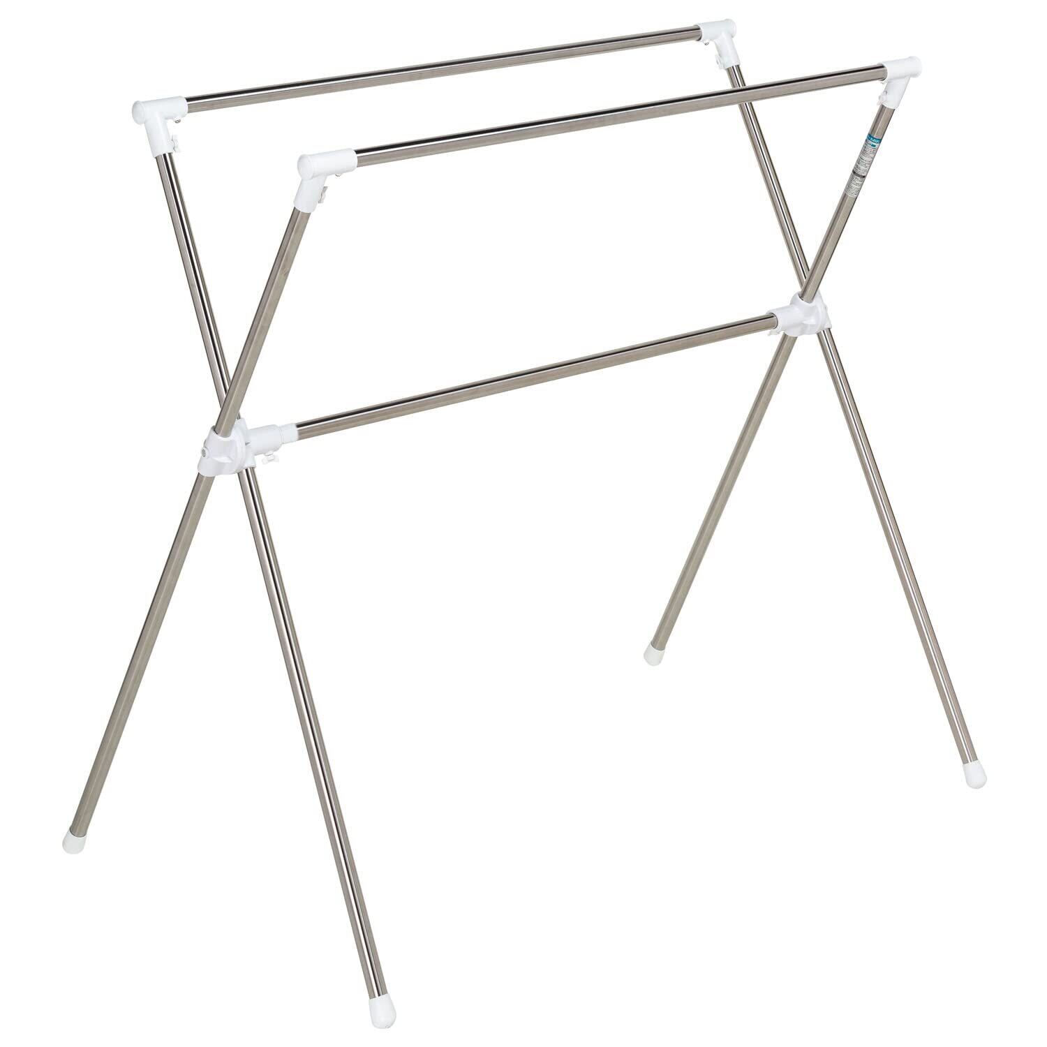 ベランダや室内でも使えるコンパクトサイズのふとんほし。収納は幅約8cmとスリムに収納。ふとん2枚干し。耐荷重約10㎏迄。(材質)パイプ:ステンレス巻きスチールパイプ、成型部品:ABS樹脂、PP樹脂、ネジ類:スチ-ル(メッキ)