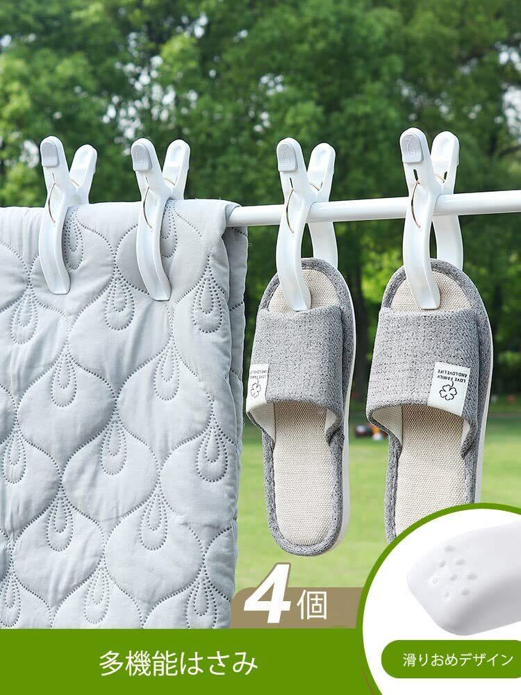 【人気商品】布団ばさみ 大型 JunyueLiang 洗濯物干し らくらく 強力バネ 布団干しばさみ 跡がつかない 固定 竿ピンチ 防風タイプ 落下防止 布団固定器 滑り止め 室外干し 耐久性 (ホワイト-4個セット)