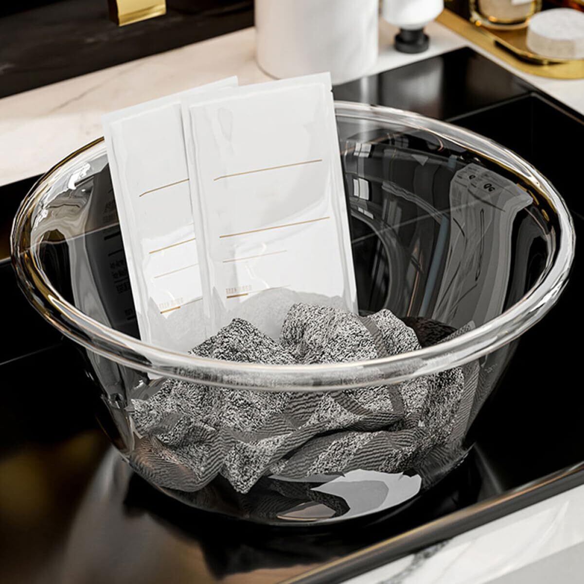 -透明な素材から作られたこの洗練されたモダンなデザインは、毎日の洗浄ルーチンを丸い浴槽に変えます。