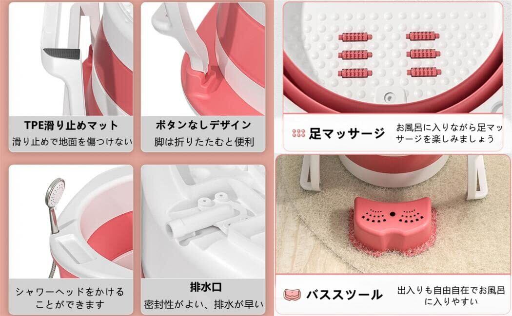 【便利な収納バスタブ】バスタブを開くために、必要に応じて押し下げます。使用しないときは、逆さまにバスタブを折ると、それは簡単に崩壊させるために浴槽の下の下をプッシュすることができます。折りたたみバスタブなので、収納や持ち運びことは簡単できます。ワンステップでコンパクトに折りたためて、収納スペースに困りません。