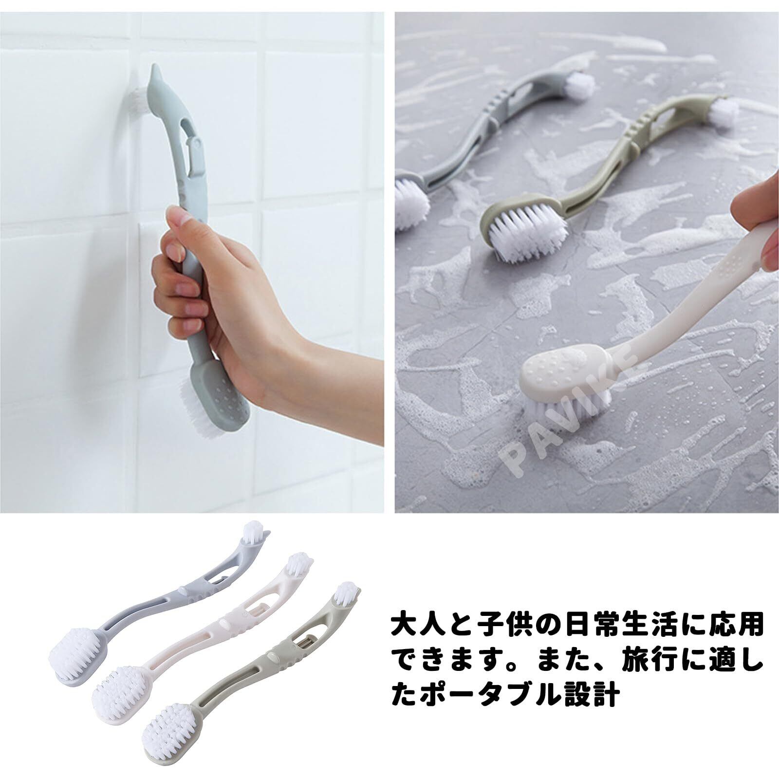 【人気商品】PAVIKE 靴 ブラシ 洗い シューズブラシ 3本セット 長柄 両端ブラシ 吊り下げ 靴ブラシ 靴洗いブラシ スニーカーブラシ 上履き洗い ブラシ 上履き ブラシ 靴用ブラシ 服ブラシ 洗濯ブラシ クリーニングブラ シューズクリーナー 多機能シューズブラシ