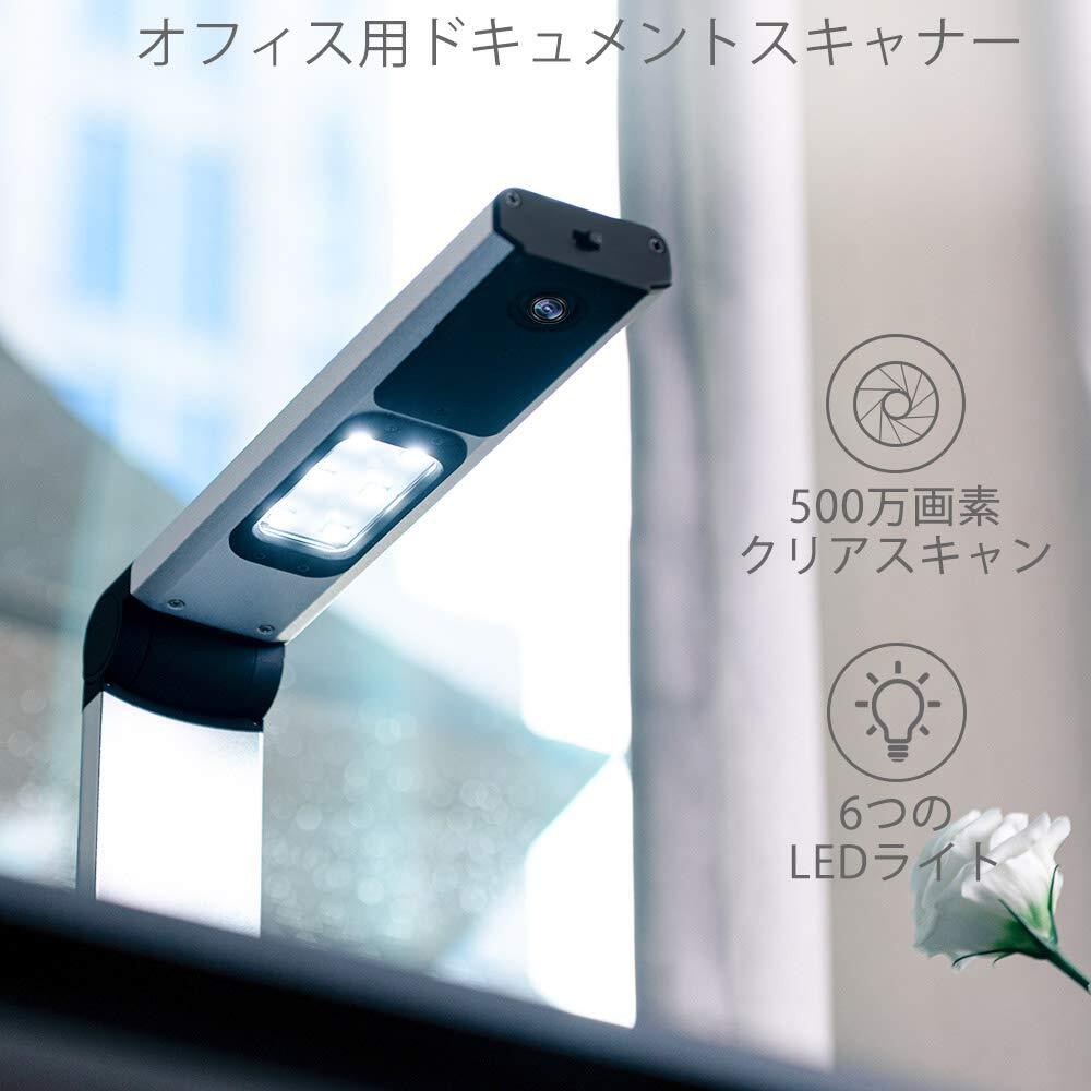 【強力な機能】500万画素のカメラを搭載したポータブルスキャナーは、最大A4サイズの文書や物体をスキャンできます。自動連続撮影、画像の歪みなどの自動補正や自動トリミング機能で、精細な読み取り性能で書類や写真などの画像データをありのままで再現できます。6つのLEDライトにより、暗い環境でも十分な明るさを確保します。