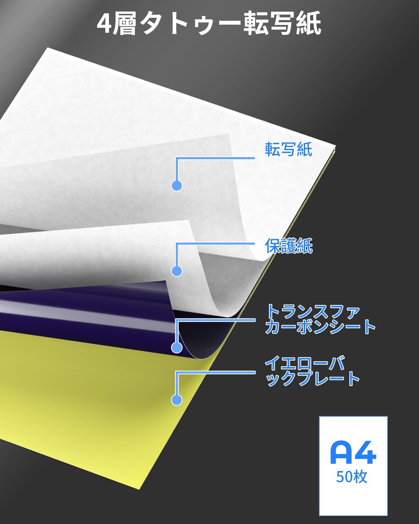 Itari A4 サーマルコピー 用紙 タトゥー 転写紙 A4サイズ 50枚セット 入れ墨 刺青 カーボン紙 サーマルコピー機用 転写カーボン M08F /M832/P831およびその他のサーマルタトゥープリンターに対応入れ墨 刺青 和彫り 彫り師 彫師 手彫り スジ彫り