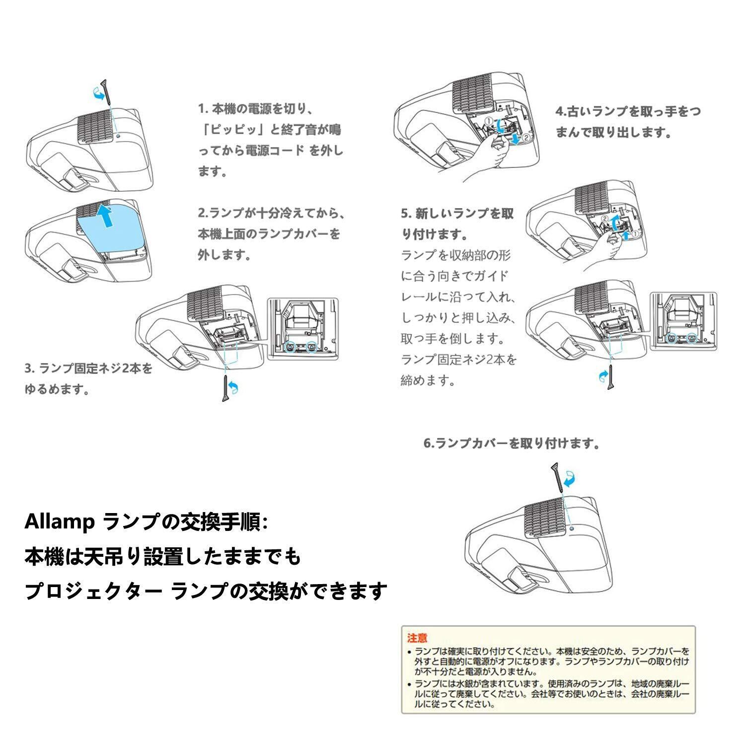 設置:ハウジングが付属しており、設置が簡単で。新しい投影ランプを交換したら、ランプタイマーをリセットし、エアフィルタと通気孔をきれいにしてください。