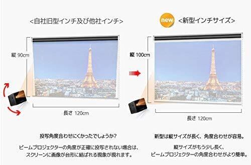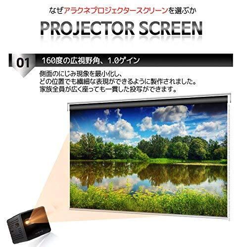 吊り下げ式(壁固定)のプロジェクタースクリーンです。 金具などを使って天井や壁に固定できます。 ホームシアター、スポーツ観戦、ホームビデオ、ミュージックビデオなどを中心に見る方に最適です。 未使用時はしまえるプルダウン式。会議室や学校やホームシアターに。 160度の広視野角で最高の画面没入度を提供 プロジェクター専用ブラックコーティング。 ピンホール現象X しわ防止処理で長時間使用可能 使用しない時はスクリーンは収納でき、見た目もすっきり。 (注意:寝かせて保管して下さい。)