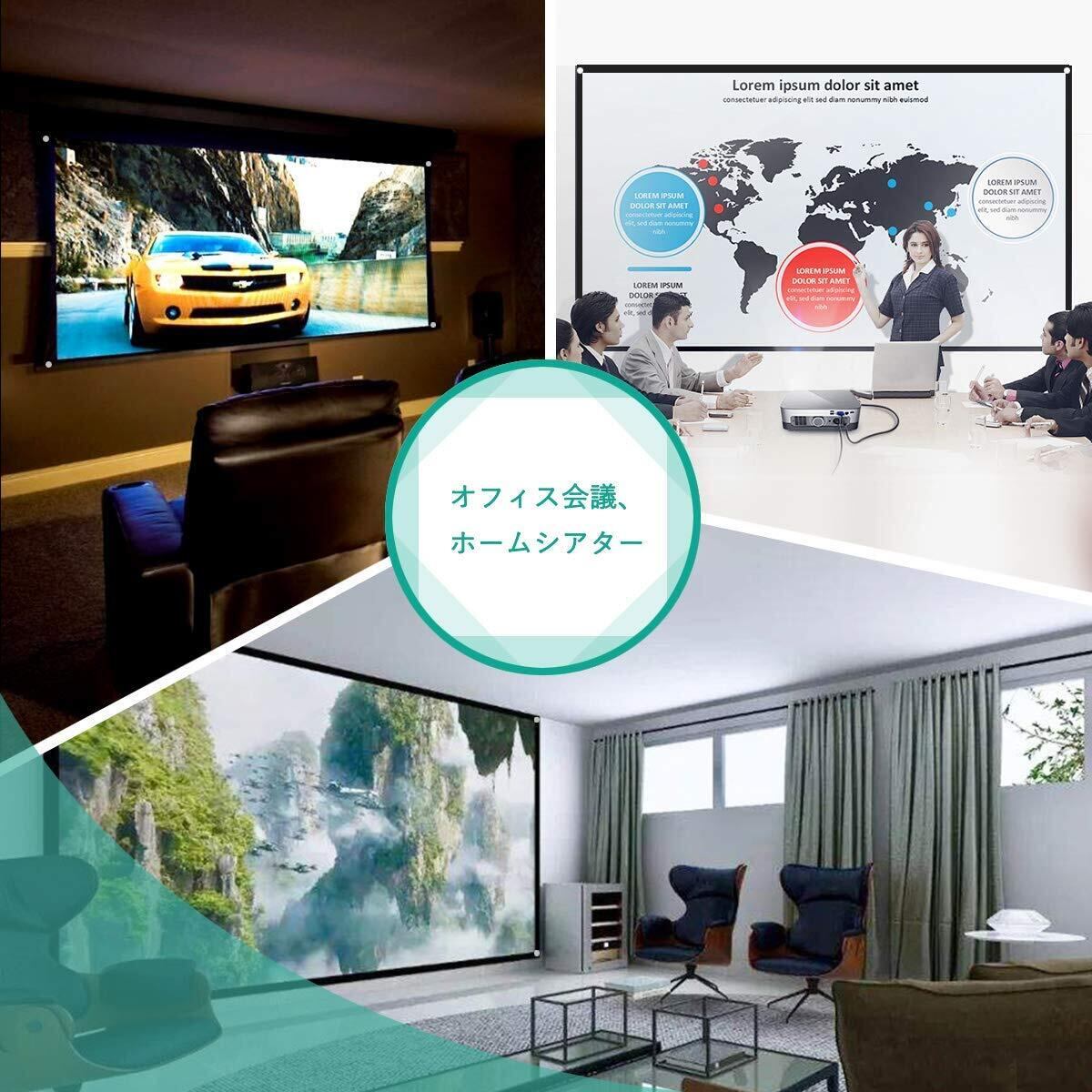 プロジェクタースクリーン100インチ (ガラス繊維材料)壁掛け式スクリーン 屋内屋外兼用 最大100型 16:9 視野角160° 防しわ加工 お手入れ簡単
