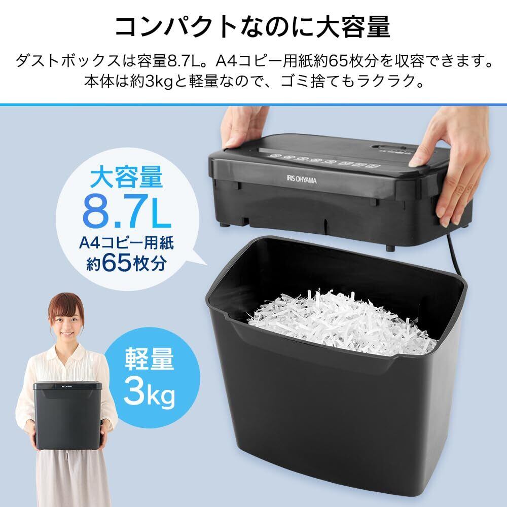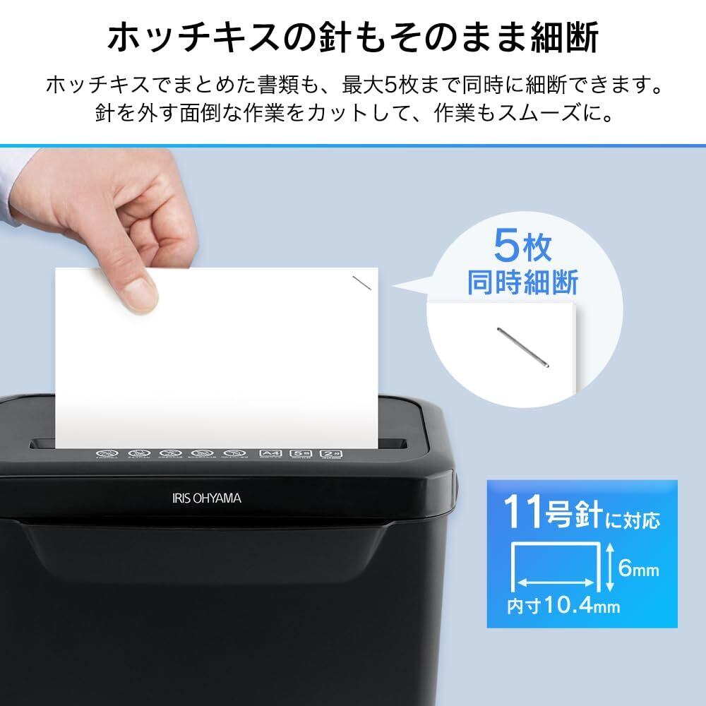 アイリスオーヤマ シュレッダー 家庭用 クロスカット 卓上 コンパクト 容量8.7L 細断枚数5枚 静音 小型シュレッダー P5GCX2 ブラック