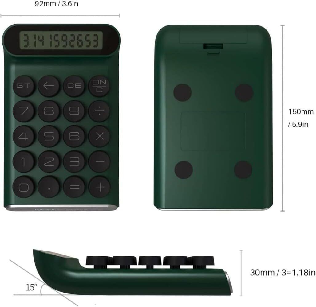 このポータブル電卓は、最適な表示と安定性を実現するために15°傾斜した画面を備えています。画面上での計算や読み取りを快適に行えます。7分間使用しないと自動的に電源が切れ、消費電力を抑えます。(単3電池1本使用)