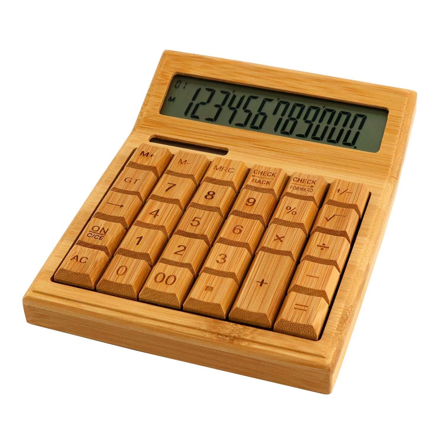 【特価セール】HEIYE デスクトップ電卓、多機能竹電子計算機カウンター12桁ソーラー&バッテリーデュアル電源ホームオフィス学校の小売店