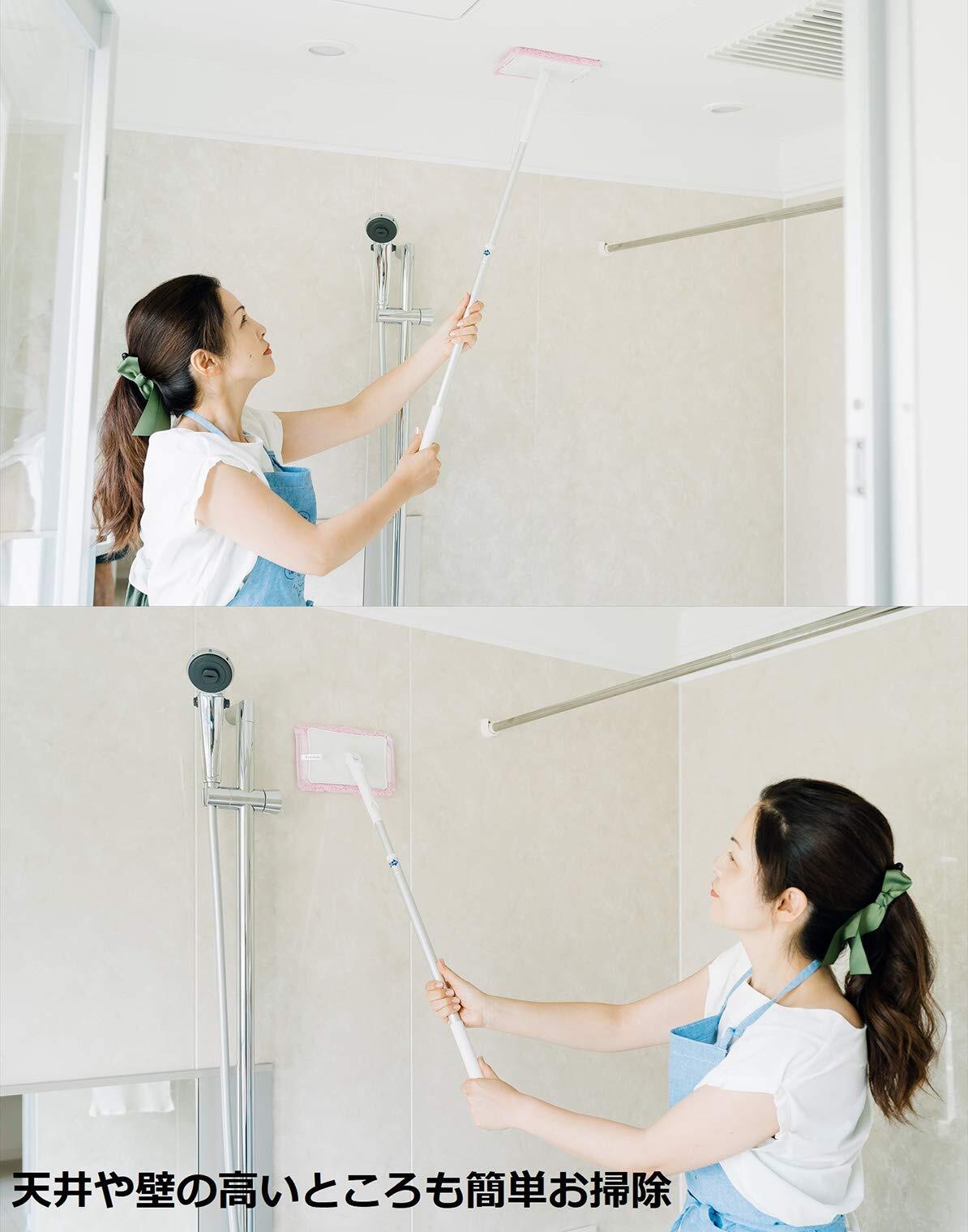 ●伸縮性のハンドルで、届きにくかった浴室の壁・天井も腰に負担をかけずに、マイクロファイバー糸でしっかり吸水しカビ防止ができます。●ヘッドは取り外せてハンディタイプとしても使用できます。●ヘッドプレートは自由に角度が変わるから離れた場所から隅々まできれいに吸水できます。●抗菌防臭加工済みなので、バイキン・ニオイを防ぎます。