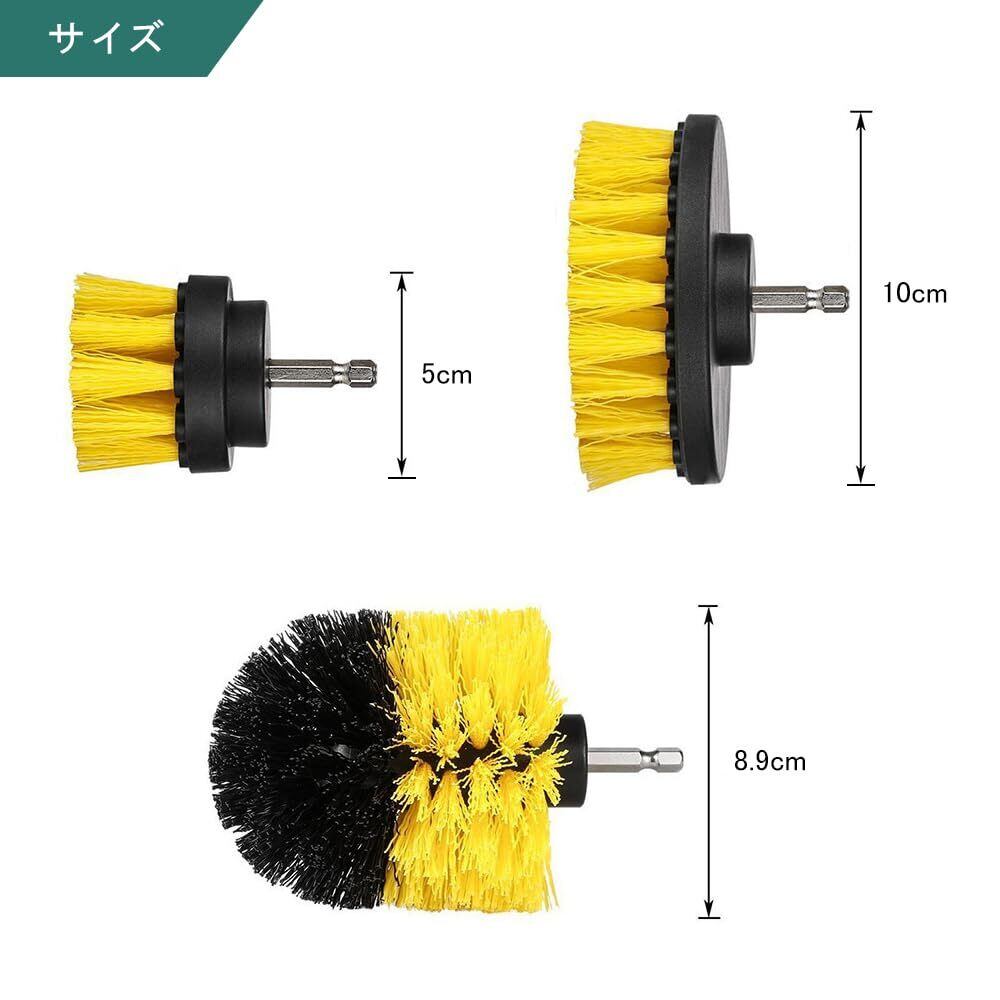 BTtime 電動掃除用ブラシ 3枚セット 電動ドリルブラシ ドリル アタッチメントキット 六角軸電動ドリルに適応 浴室/キッチン/車輪/窓枠用 (イエロー)