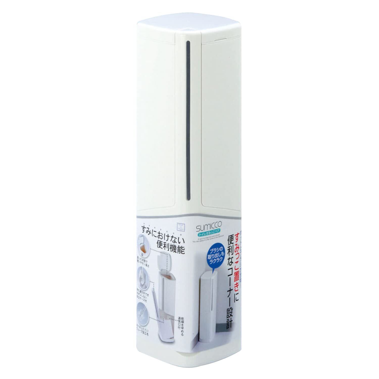 ポットとブラシが合体した便利なトイレブラシとケースのセットです。 すみっこにすっきりと収まるコーナー設計で、座った状態でもいつでも使いやすい高さです。