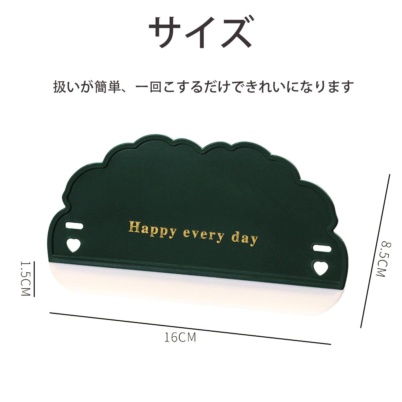 雲の形をしたこの可愛らしいスクイジーは、キッチンやバスルームの清掃に最適なアイテムです。ホワイトとグリーンの2個セットで、それぞれの空間に合わせて使い分けることができます。柔らかい素材を採用しているため、ガラスや鏡、洗面台などのデリケートな表面を傷つけることなく、効果的に水切りができます。コンパクトなサイズで収納も簡単で、場所を取りません。両端にある取り付け用の穴とハート型のデザインが特徴的で、実用性とデザイン性を兼ね備えています。多機能な水切りワイパーとして、浴室の壁面やシャワードア、キッチンのシンクまわりなど、様々な場所で活躍します。使いやすい握りやすいサイズで、日々の掃除をより効率的にサポートします。耐久性があり、長期間使用できる実用的なアイテムです。 カラー:ホワイト&グリーン(2個セット) サイズ:12×8×2cm(コンパクト設計) 材質:高品質ソフトシリコン(非吸着性・耐熱性) 包装:ホワイト*1グリーン*1