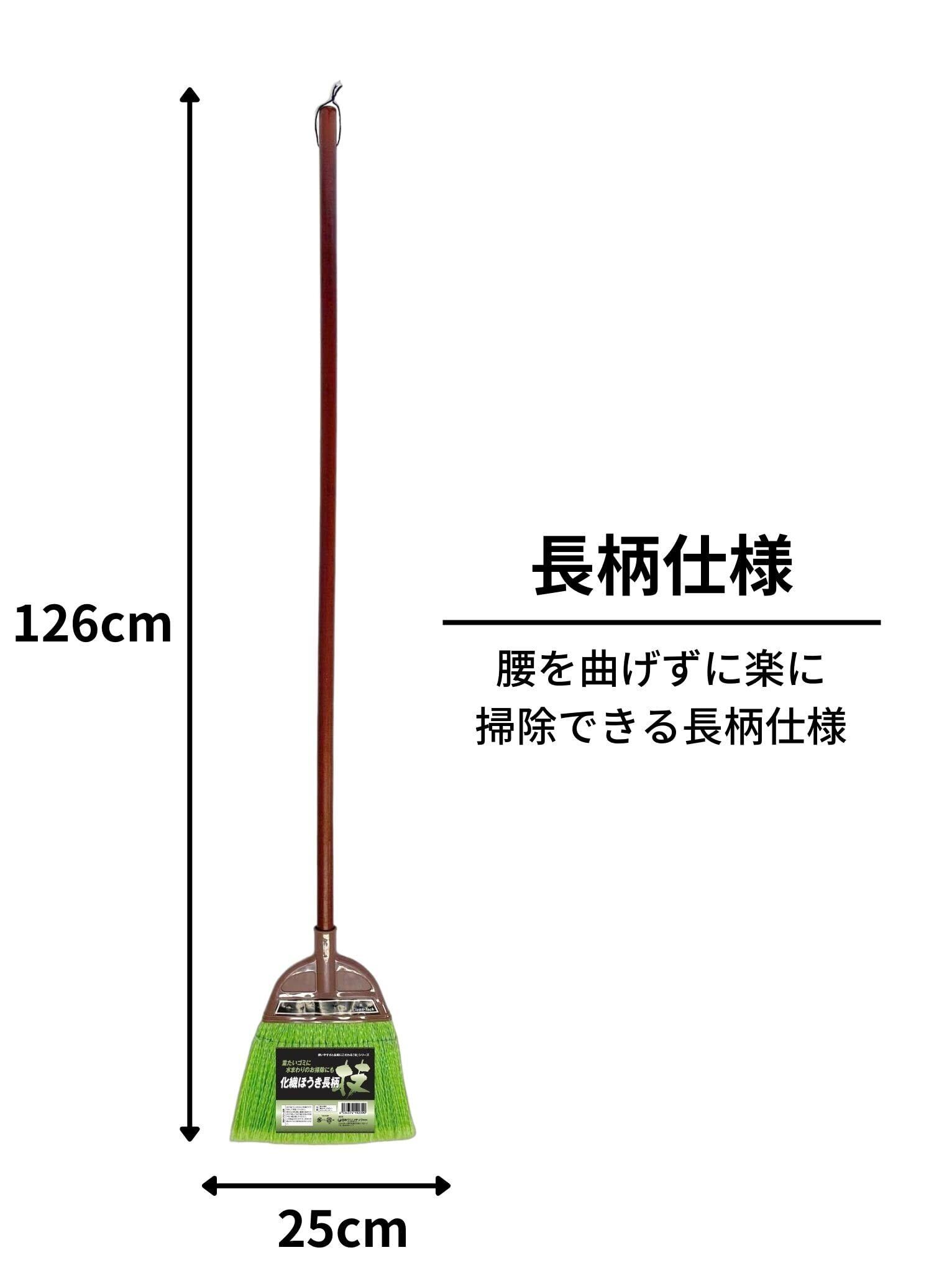 【特徴】穂は水気に強い化繊を使用し、屋外の細かいチリゴミから粗ごみの掃除に適しています。木柄仕様の高級ホーキです