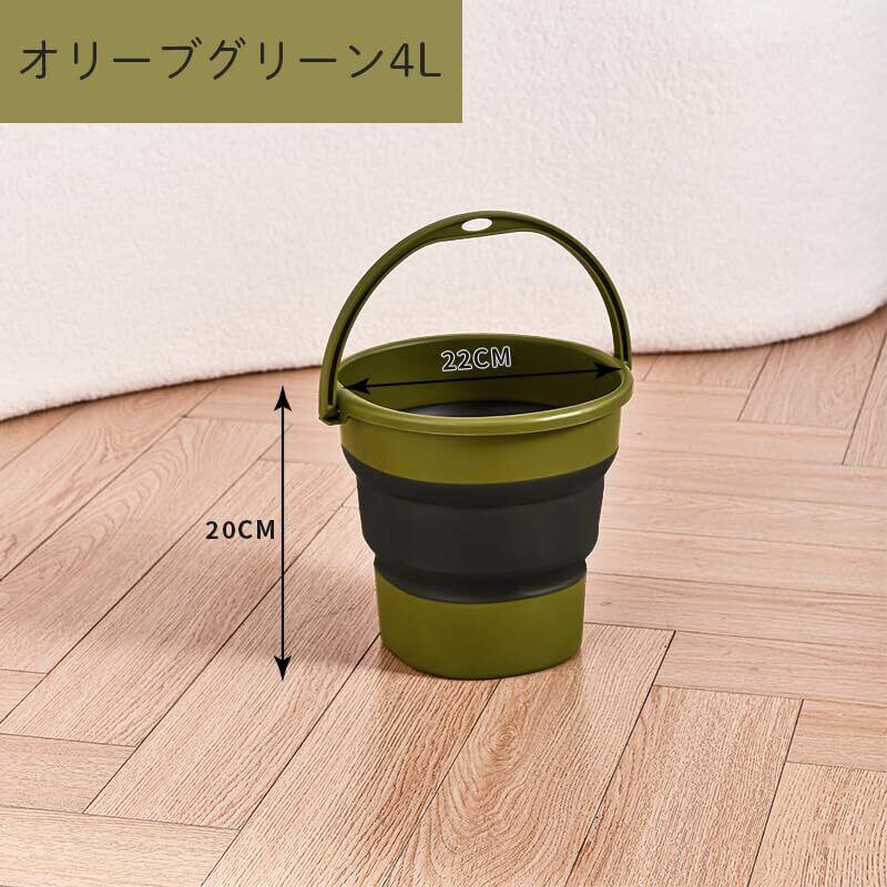 Gorocking 折りたたみ バケツ 4L/7L/13L 5色 掃除 洗濯 洗車 足湯 釣り (オリーブグリーン, 4L)