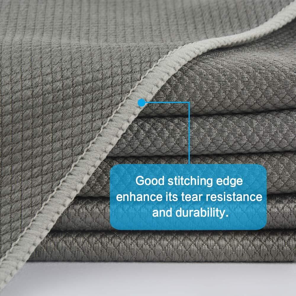マイクロファイバー製:ポリエステル80%、ナイロン20%。マイクロファイバーで丁寧に織り上げた高品質のタオルで、角が丸み編み方法です、繊維破損事が全くありません、傷がつかない、毛羽が出ない、簡単に汚れを除去できます