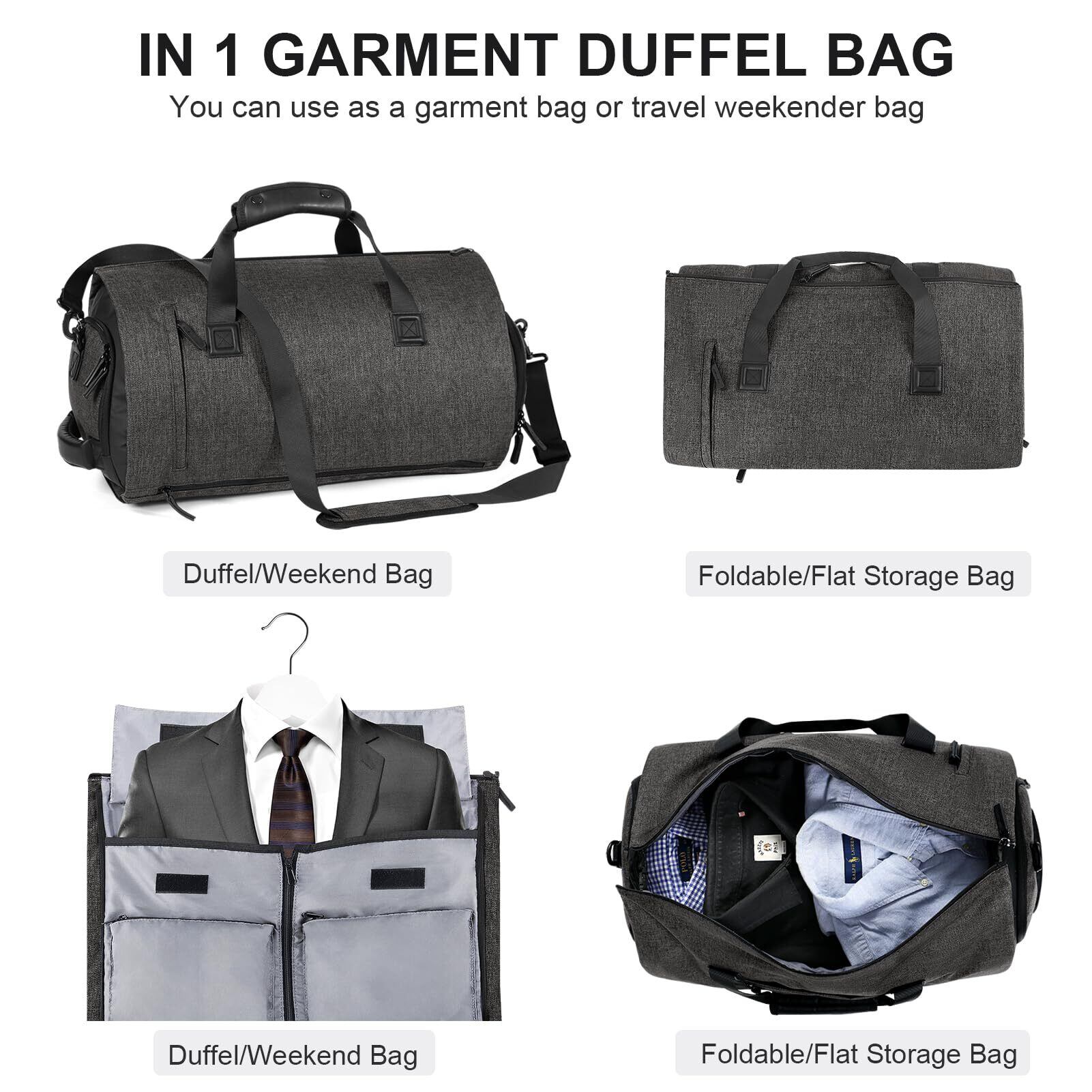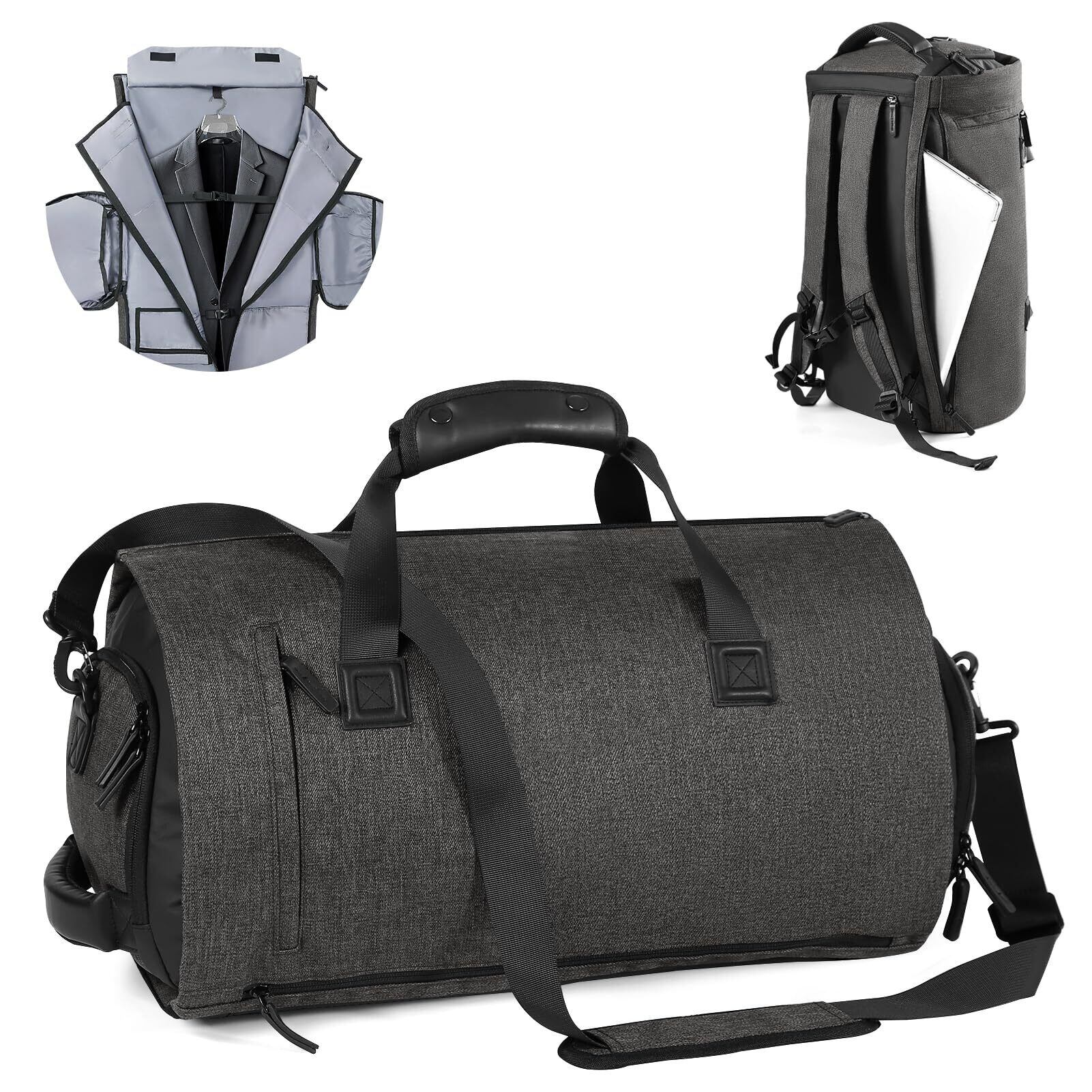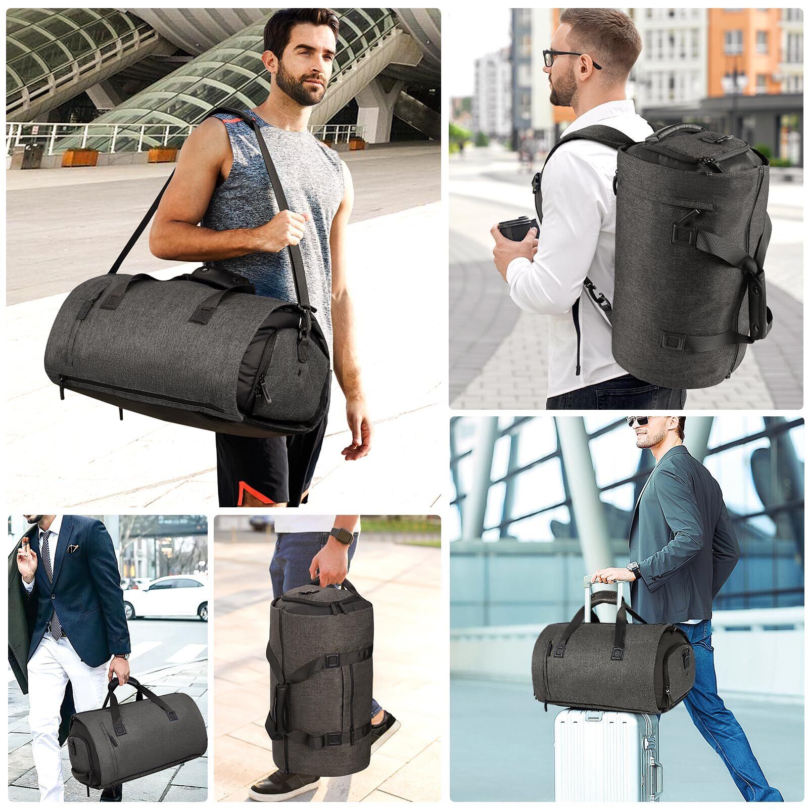 Packitvel 45L 変換可能 ガーメントバッグ バックパック ストラップ 付き 取り外し可能 ショルダーストラップ 付き 5 in 1 キャリーオン ウィークエンドダッフルバッグ シューズポーチ 付き 男女兼用,ブラック