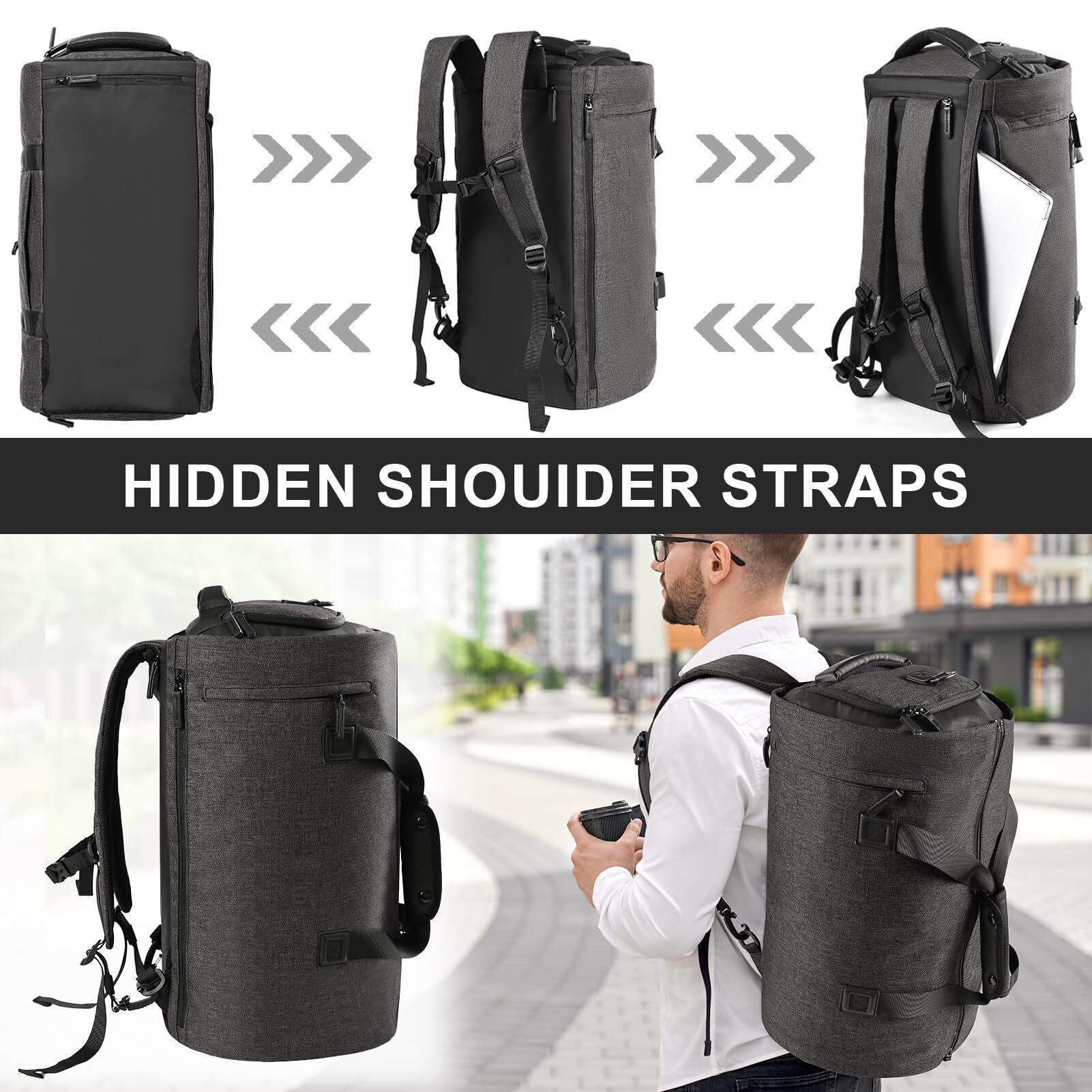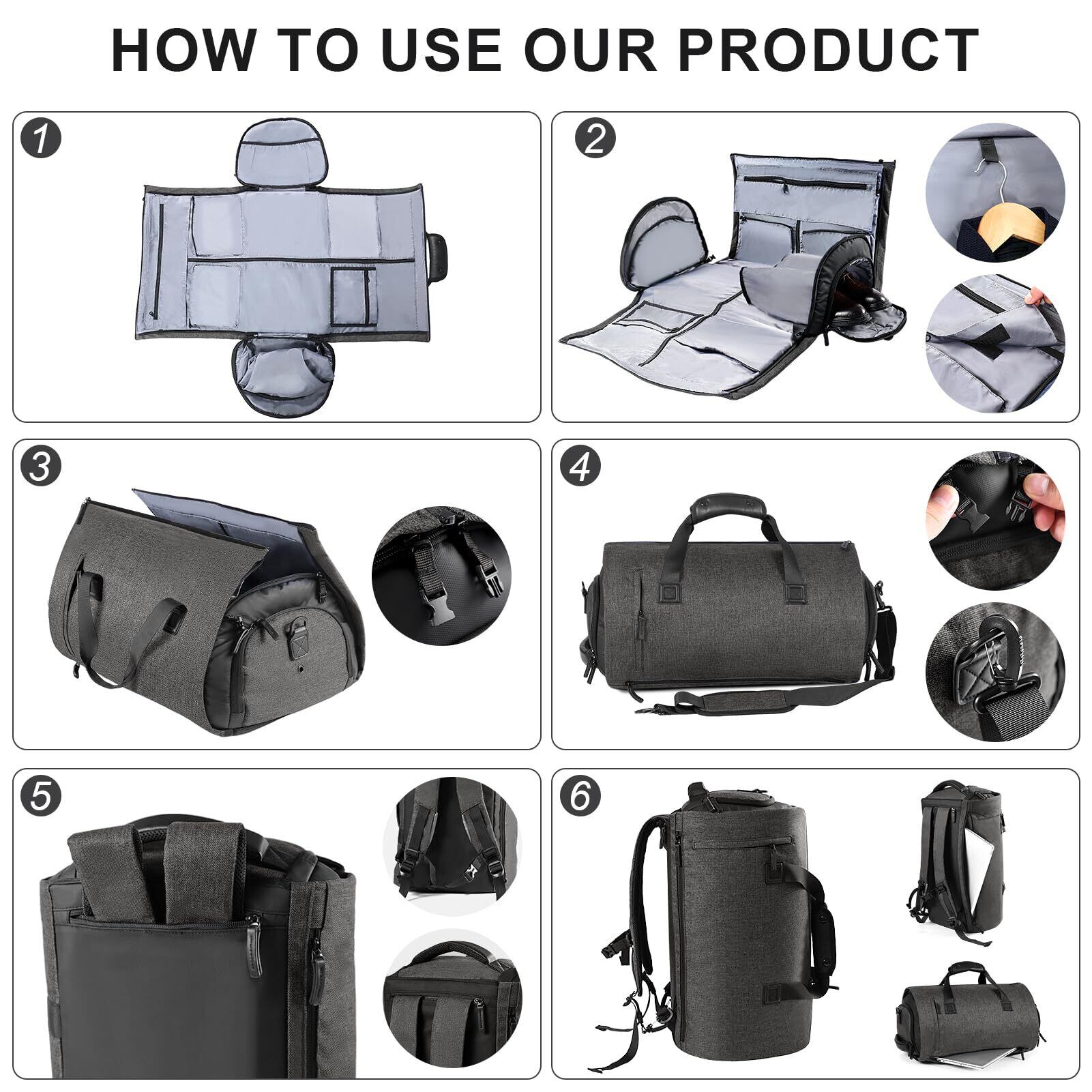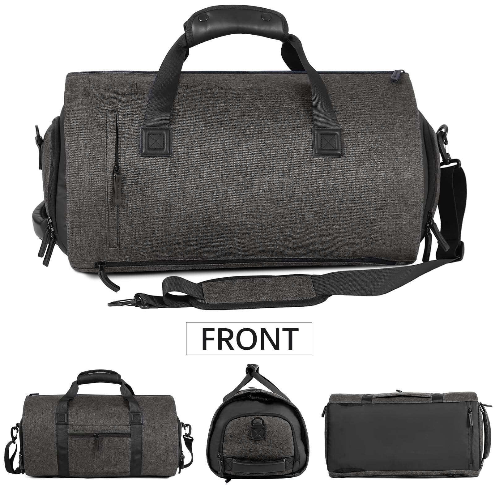 Packitvel 45L 変換可能 ガーメントバッグ バックパック ストラップ 付き 取り外し可能 ショルダーストラップ 付き 5 in 1 キャリーオン ウィークエンドダッフルバッグ シューズポーチ 付き 男女兼用,ブラック