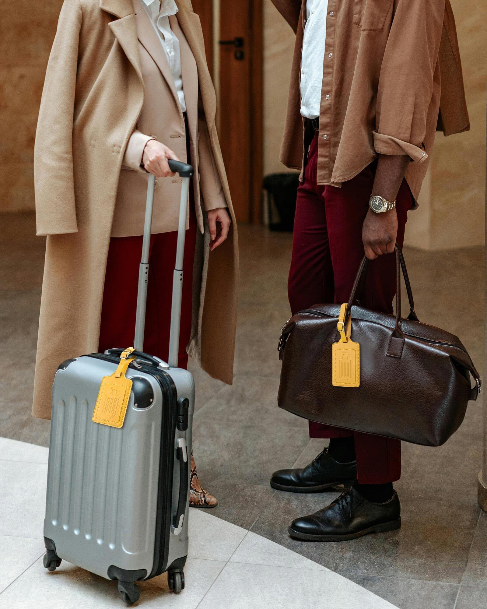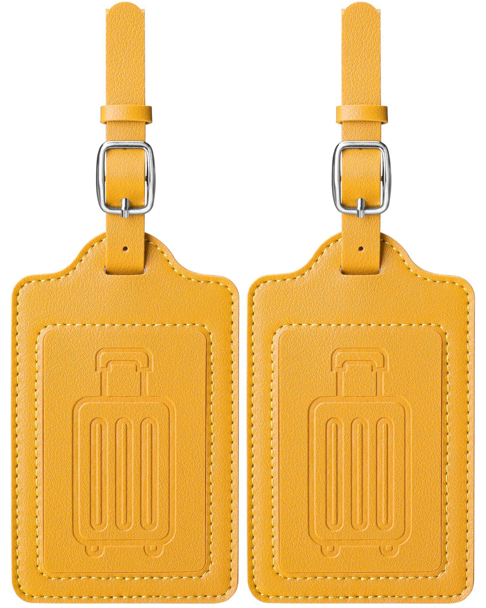 Teskyer 荷物タグ PUレザー スーツケースタグ 出張用タグ 番号札 バッグ用ネームタグ 旅行タグ トラベル用 旅行手荷物 ラベル 紛失防止 2枚入り(イエロー)