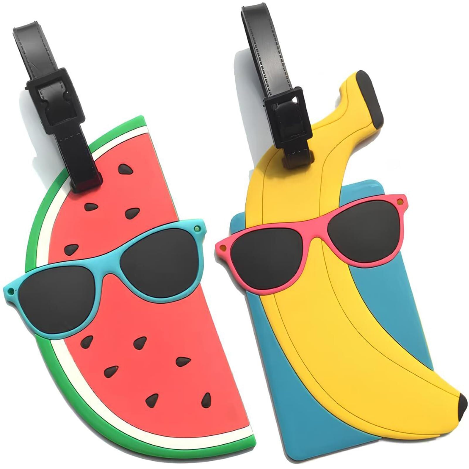 【新春セール】荷物タグ 2個入り バッグ用ネームタグ スーツケース ネームタグ 旅行タグ ラゲッジタグ ナンバータグ トラベルタグ 防水PVC 超軽量 紛失防止 旅行用 出張用 荷物ラベル 名刺ホルダー ネームカード付き 男女兼用 (スイカ+バナナ)