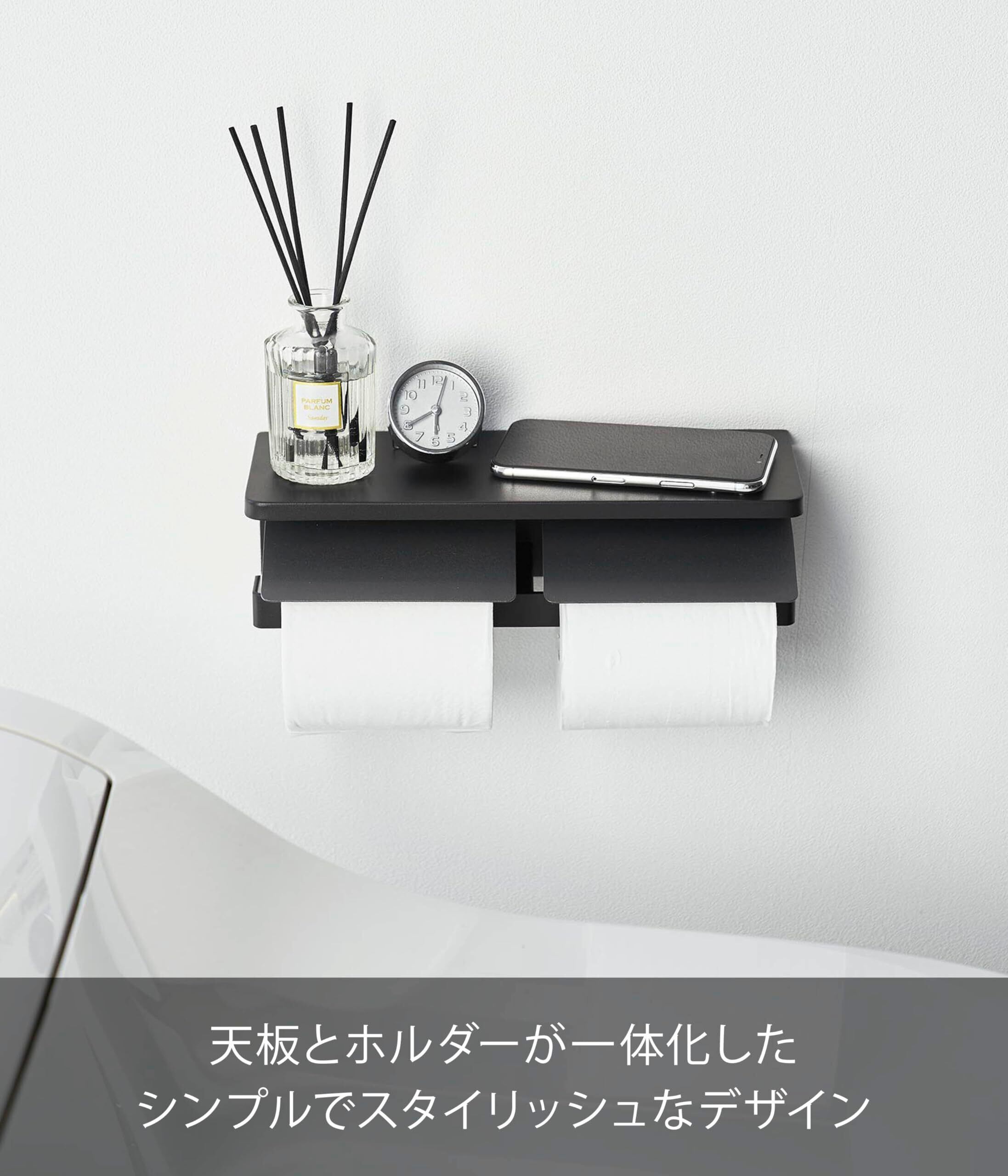 山崎実業(Yamazaki) 【石こうボードピンセット・木ネジ 付属】 ウォール トイレットペーパーホルダー ダブル 石こうボード壁対応 ブラック W28.5×D12×H8.5cm タワー tower 棚付き 1300
