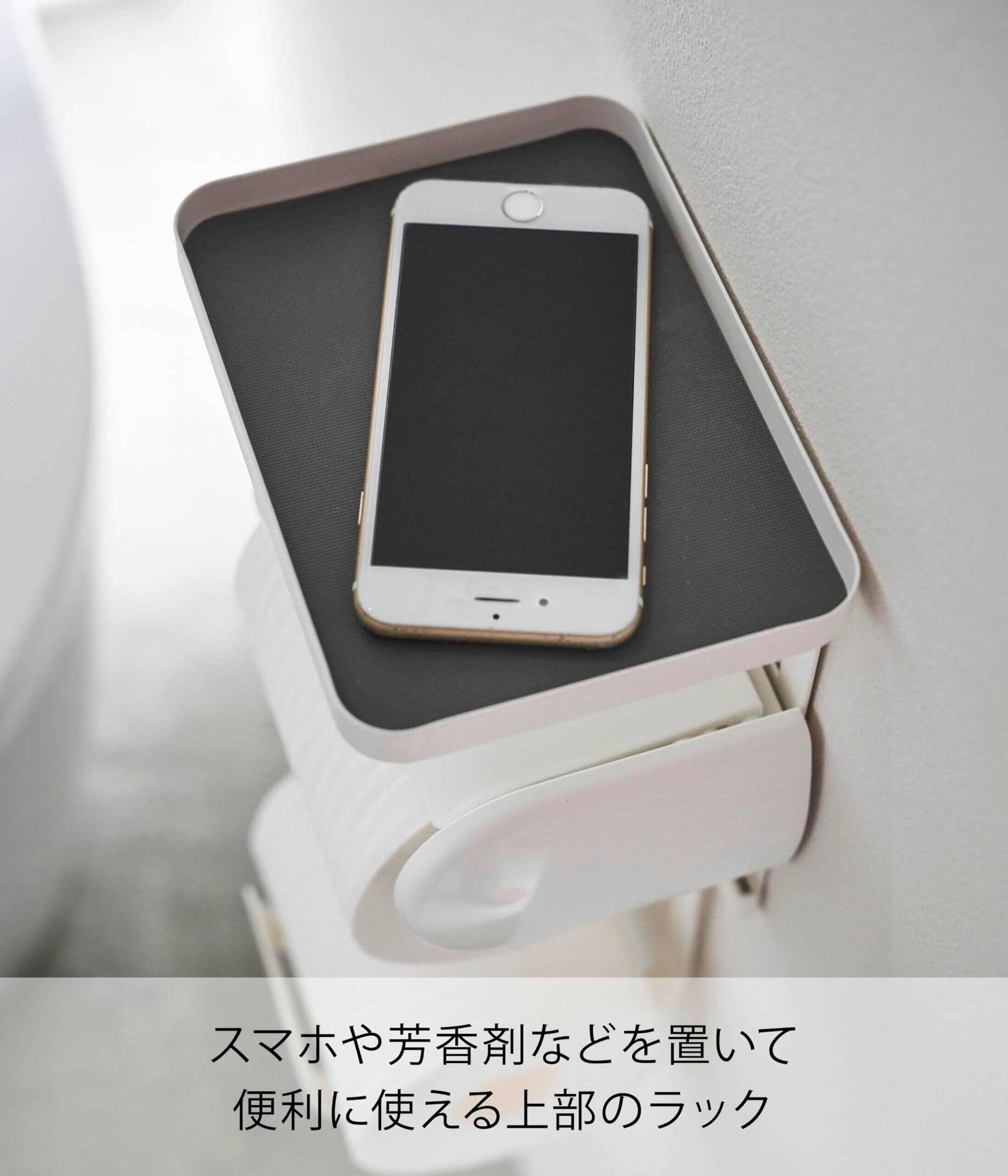 下部ホルダーにはトイレットペーパーロールのストックを収納可能。