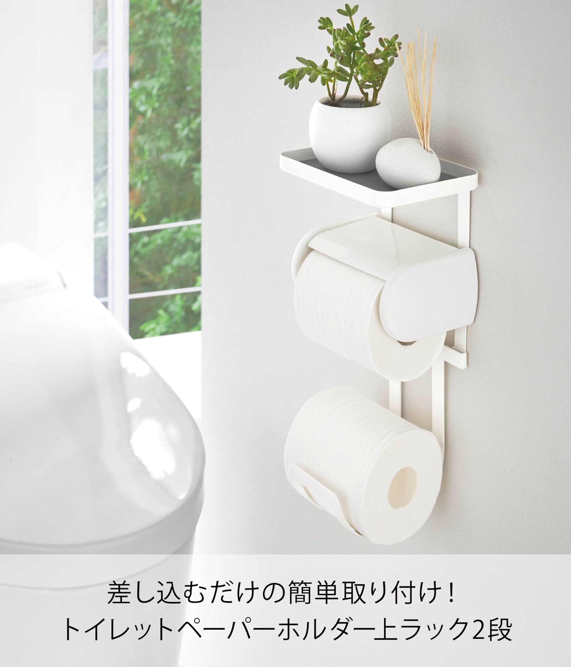 【新着商品】山崎実業(Yamazaki) トイレットペーパーホルダー 上ラック 2段 ホワイト 約W17×D12.5×H35cm プレート Plate 棚 小物置き トイレ 4436
