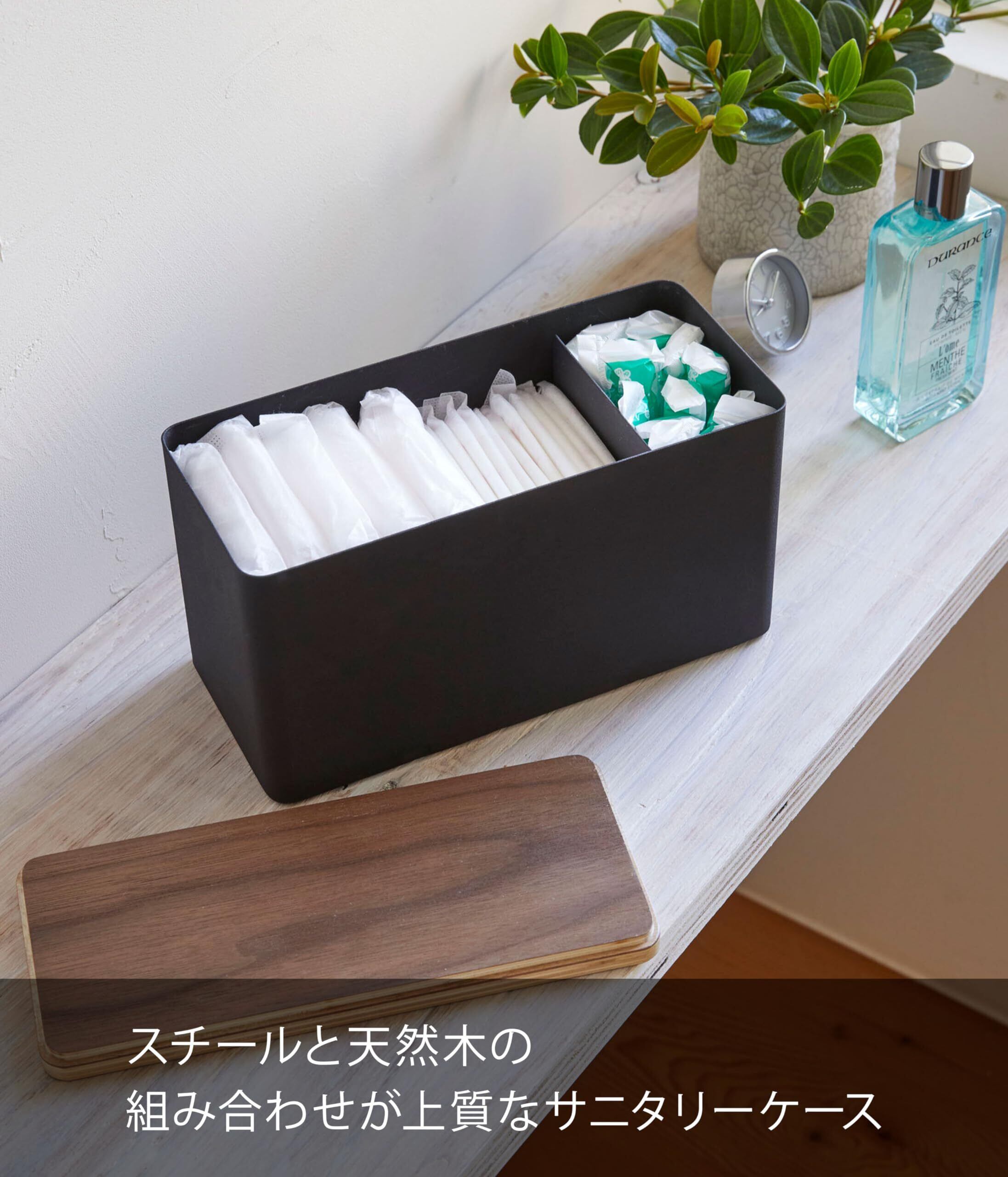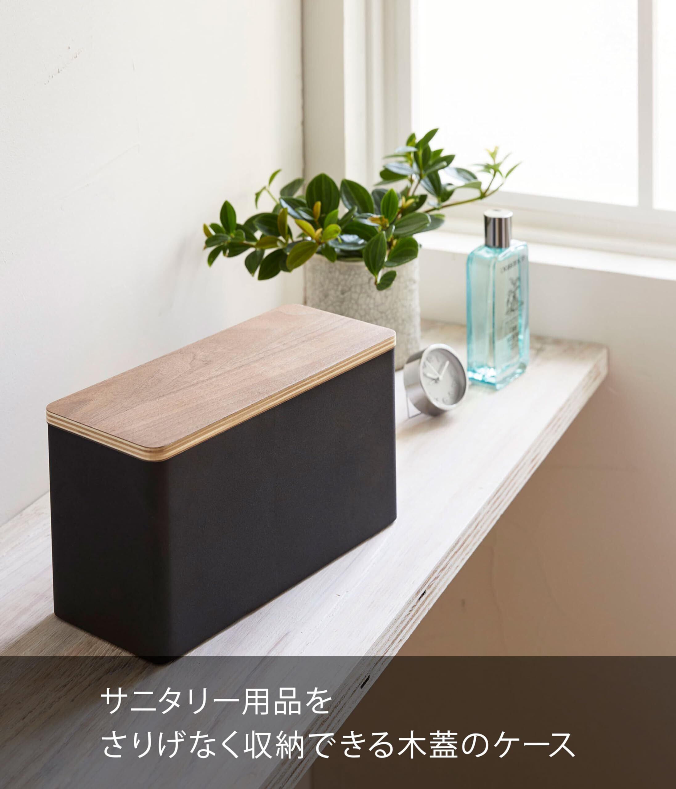 サニタリー用品をさりげなく収納できる木蓋のケースです。