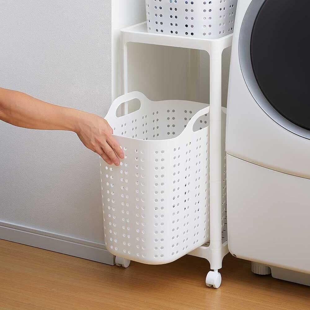 サンカ サンバッサ やわらか素材のソフトバスケット スリムなかたちですっきり収納 L ホワイト ドット穴が小さく衣類が傷つきにくい 軽量 大型 大容量 通気性 片手で持ち運び プラスチック (幅42×奥行28×高さ42cm) 簡単お手入れ 清潔 ランドリー 洗濯かご 銭湯 サウナ おしゃれ 日本製 SANKA VOB-LWH