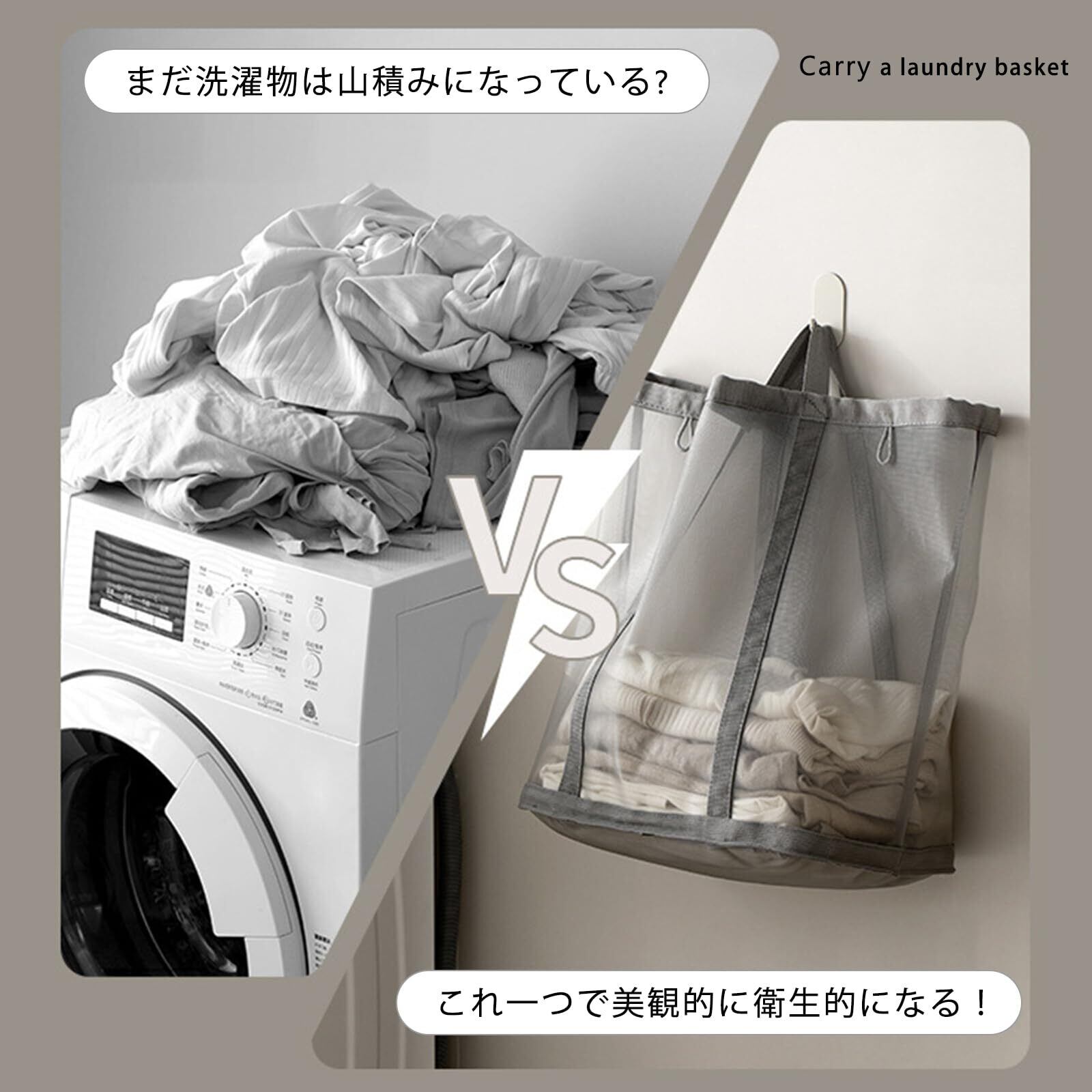 [Senteria] ランドリーバッグ 折りたたみ 大容量 洗濯カゴ ランドリーバスケット 丈夫 メッシュ 軽量 ランドリー収納 洗濯物入れ 洗濯物カゴ 大きめ プール 収納 壁掛け 取っ手付き おもちゃ収納 旅行 家庭用 グレー