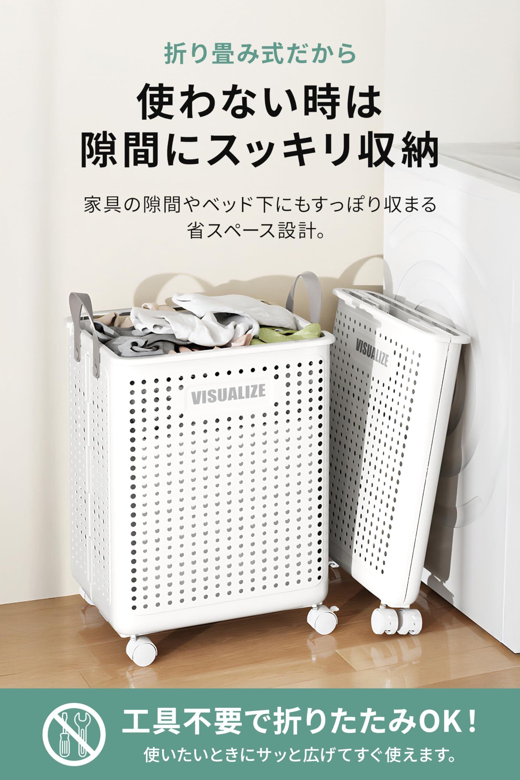 【数量限定】AP LAB 洗濯かご 折りたたみ [使わない時はスリムに収納] キャスター付き 洗濯物カゴ ランドリーバスケット 大容量 洗濯物入れ ランドリー収納 アイボリーホワイト (L)