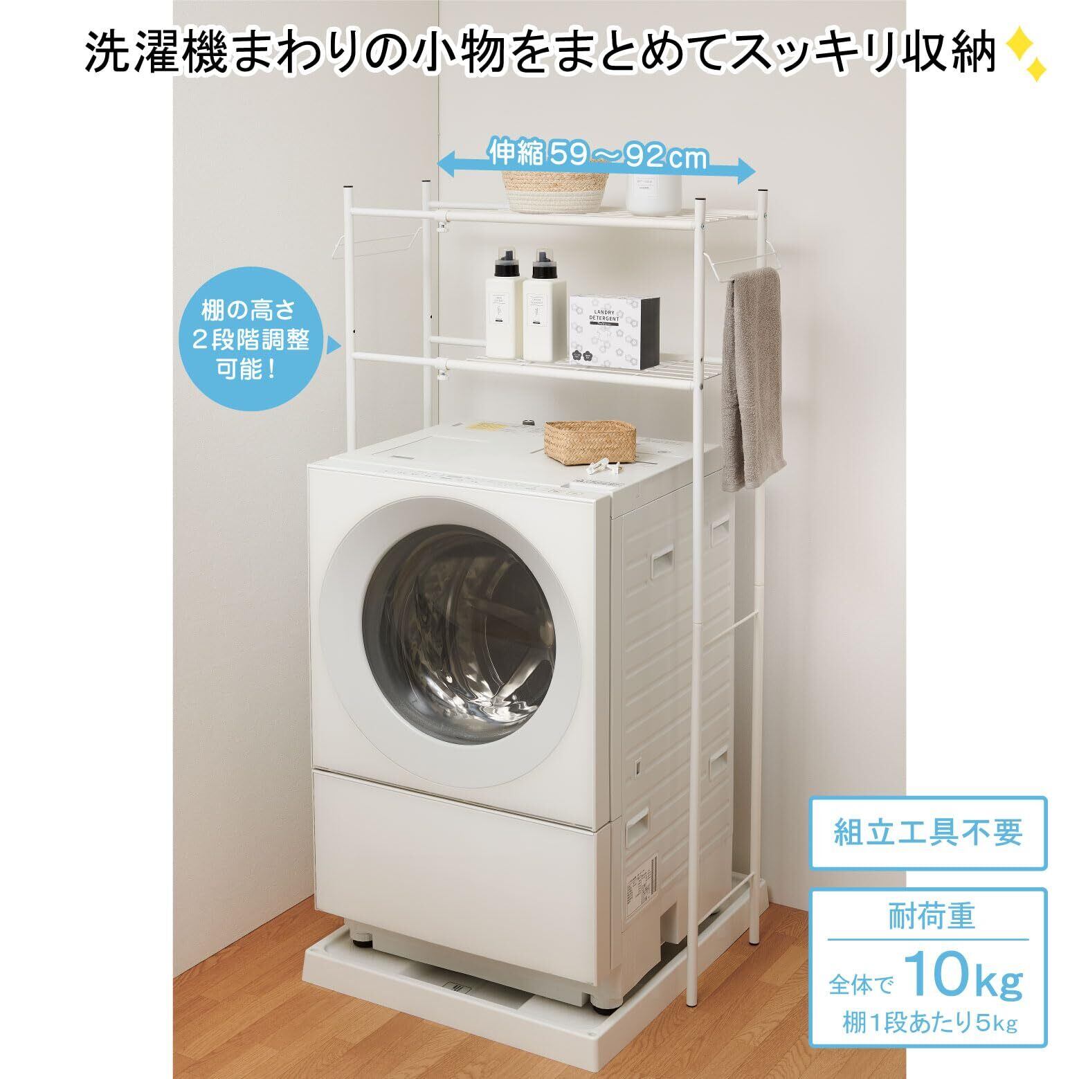 ・洗濯機まわりの小物をすっきり収納。幅が59~92cmまでスライドできるランドリーラック。
