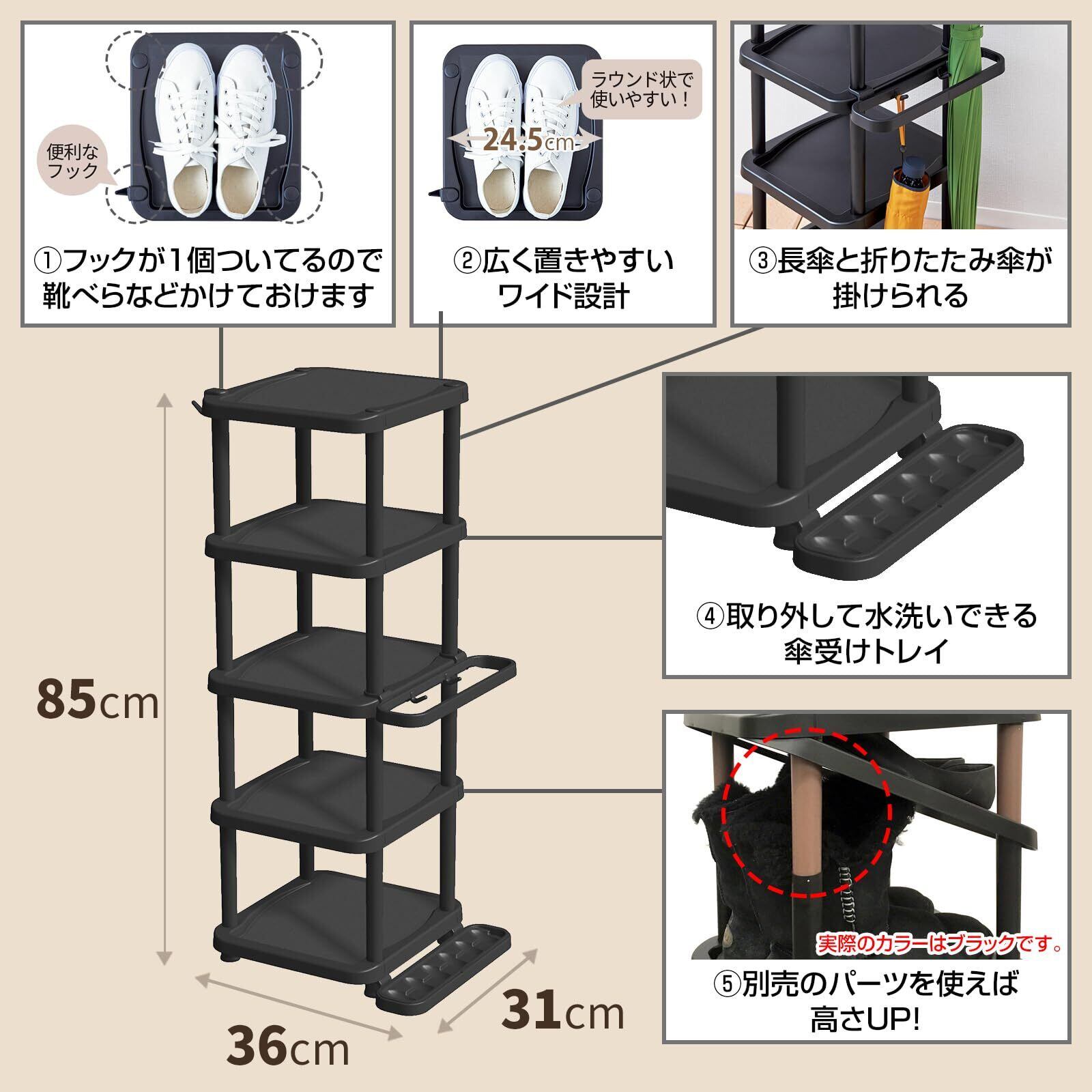 天馬 組立が簡単で玄関の省スペースを有効活用できるシューズラック くつ置けるん棚 5段 傘も一緒に収納できるスリム靴箱 シューズボックス 靴棚 【簡単組立】【幅36×奥行31×高さ85cm】