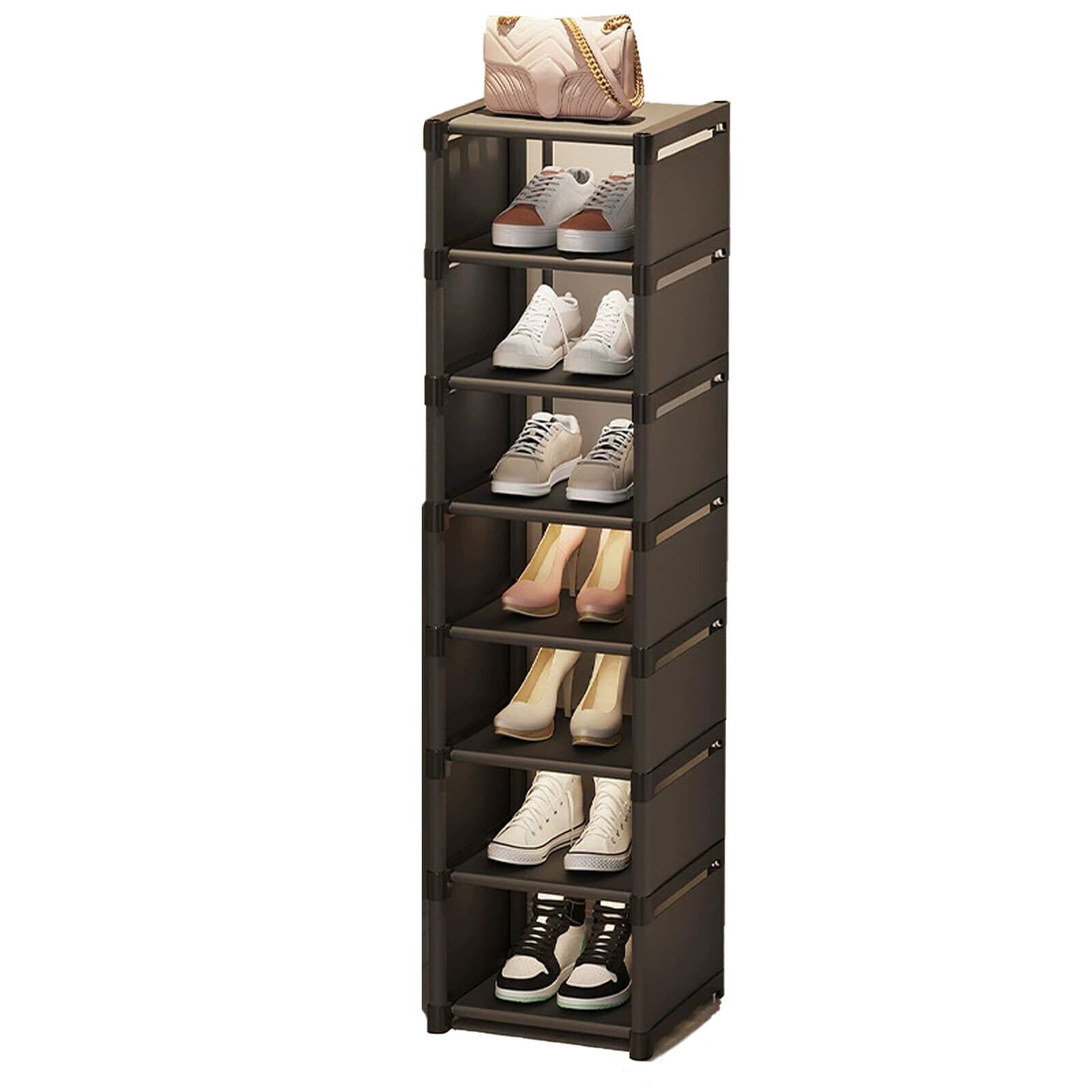 【2022最新】【LONGRUI公式】シューズラック 省スペース 靴収納ラック 不織布 仕切り 大容量 角 靴 収納 耐久性 おしゃれ スリム シューズボックス つっぱり 靴収納ボックス コンパクト 組み立て式 収納 下駄箱 安定 軽量 靴棚 狭い玄関 縦長 靴箱 スリム 狭い 玄関収納 長靴 ブーツ スニーカー 扉 壁 (ブラック8段)
