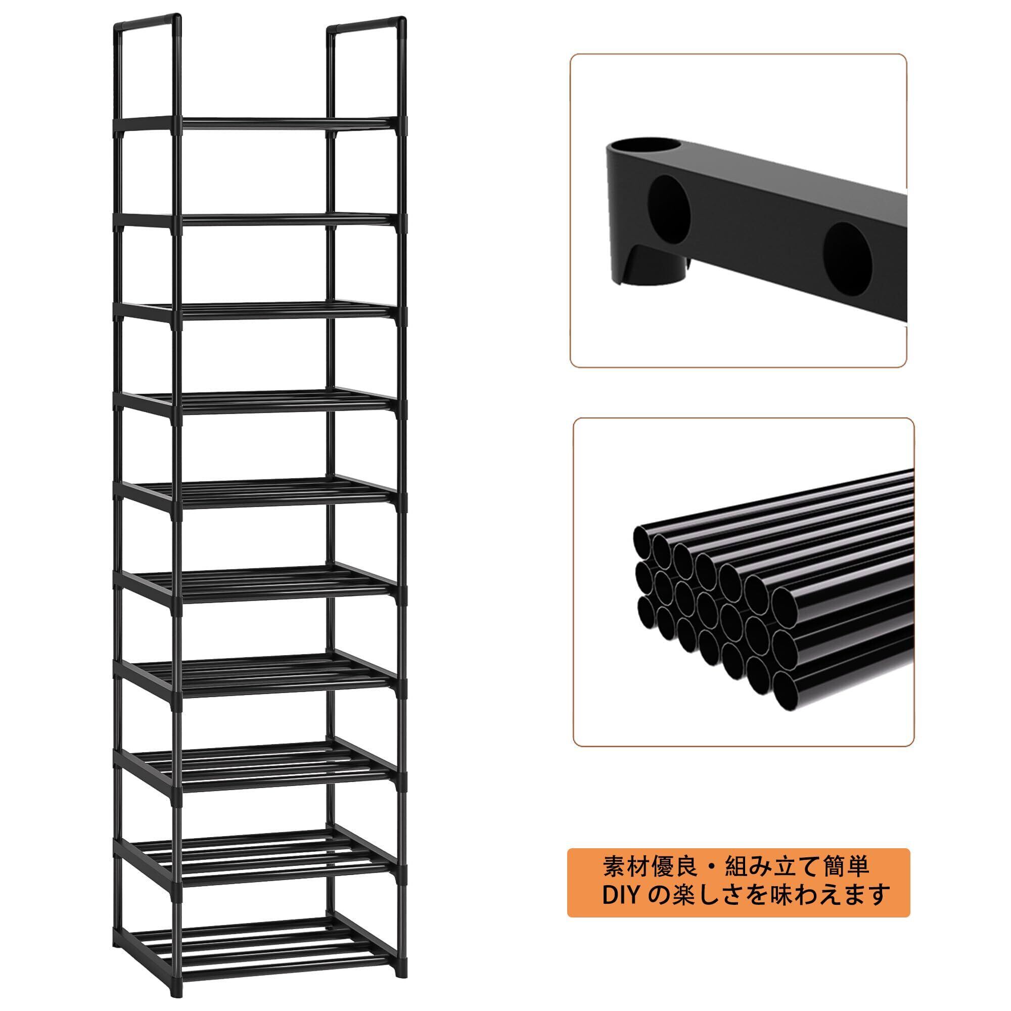 OYREL シューズラック 10段 金属製 頑丈 靴 ラック|スリム省スペース 20足収納可能 玄関/クローゼット対応 靴棚 組立簡単 ブラック 幅43×奥行30×高さ200cm