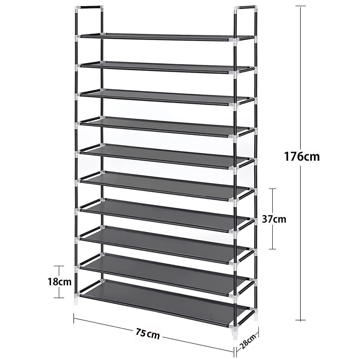 Hicrifth シューズラック 組み立て式 大容量 10段 靴収納 下駄箱 スリムシューズラッ 玄関収納 おしゃれ 靴入れ 靴棚 幅約75×奥行28×高さ176cm (ブラック)
