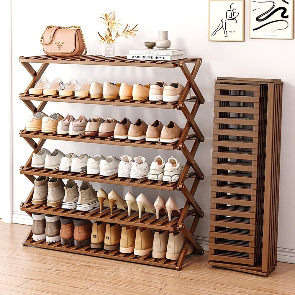 Fuyutu シューズラック 折りたたみ スリム 省スペース 3段/4段/5段/6段 天然竹製 完成品 幅50/70/101cm 組立不要 靴棚 靴収納 玄関 室内 廊下 部屋