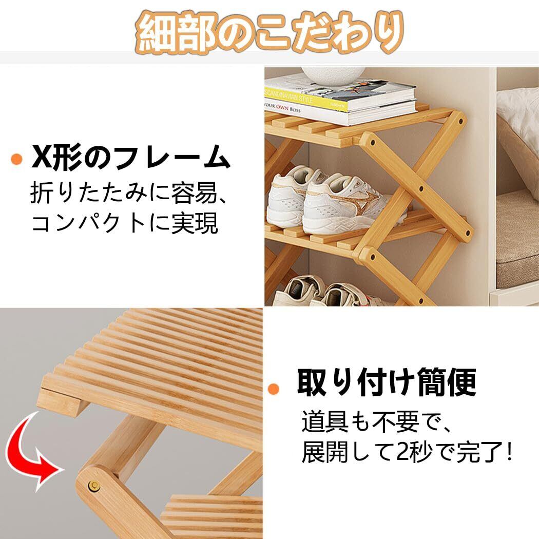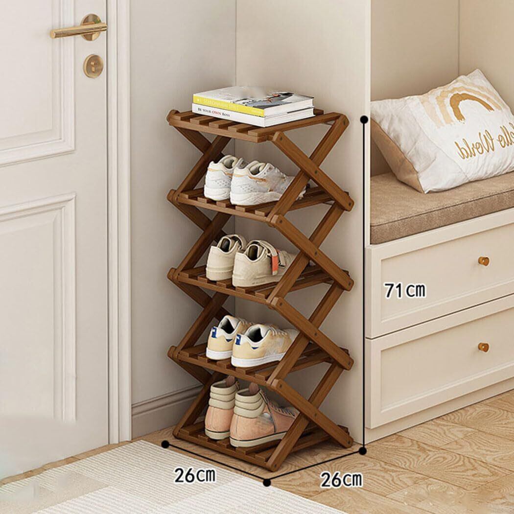 Yeziner シューズラック 玄関 スリム 靴棚 折りたたみ可能 竹製 木目調 シューズ ラック スリッパ 収納棚 省スペース コンパクト おしゃれ すき間 幅26cm 奥行26cm ひとり暮らし (茶色5段)