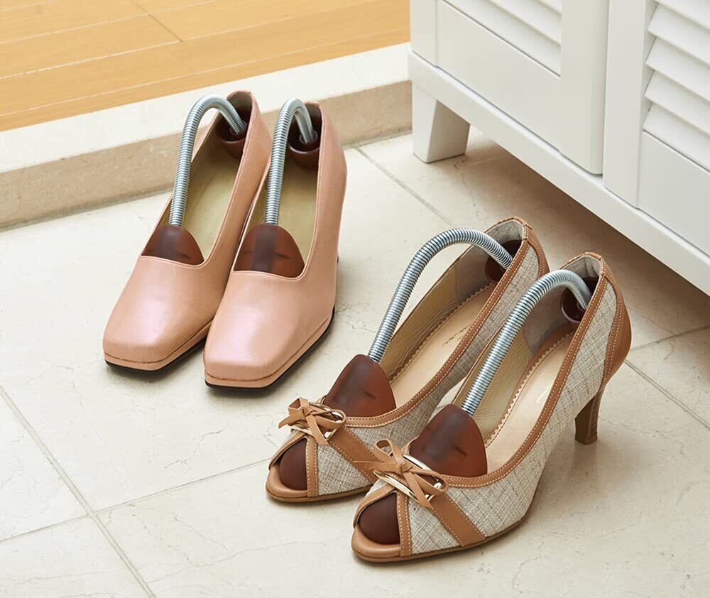 脱いだままの靴や雨に濡れた靴などの型崩れを防ぐスプリングタイプのシューズキーパー