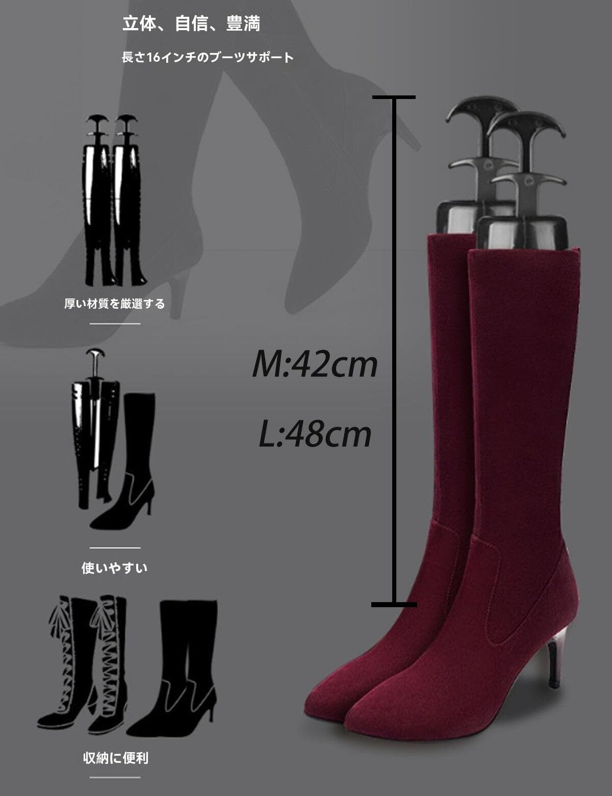 [JinxoGleam] ブーツキーパー 型崩れ防止 ロングブーツ 長靴 通気 シワが伸びて倒れない 省スペース 自動調整 乗馬ブーツ 長靴 レインブーツ ミリタリーブーツ