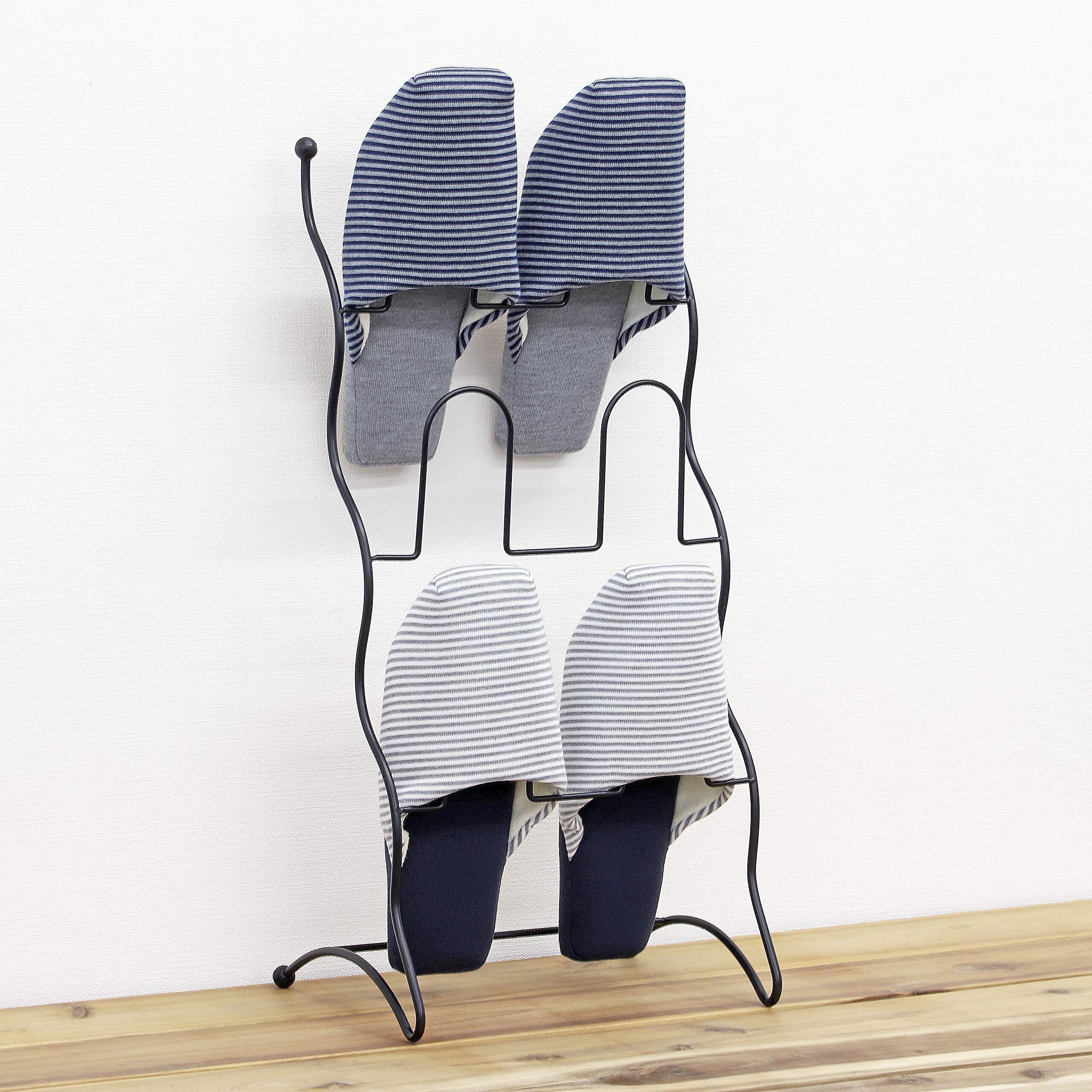 【BLKP】 パール金属 スリッパ ラック 3段 限定 マット ブラック ワイヤー BLKP 黒 N-7569