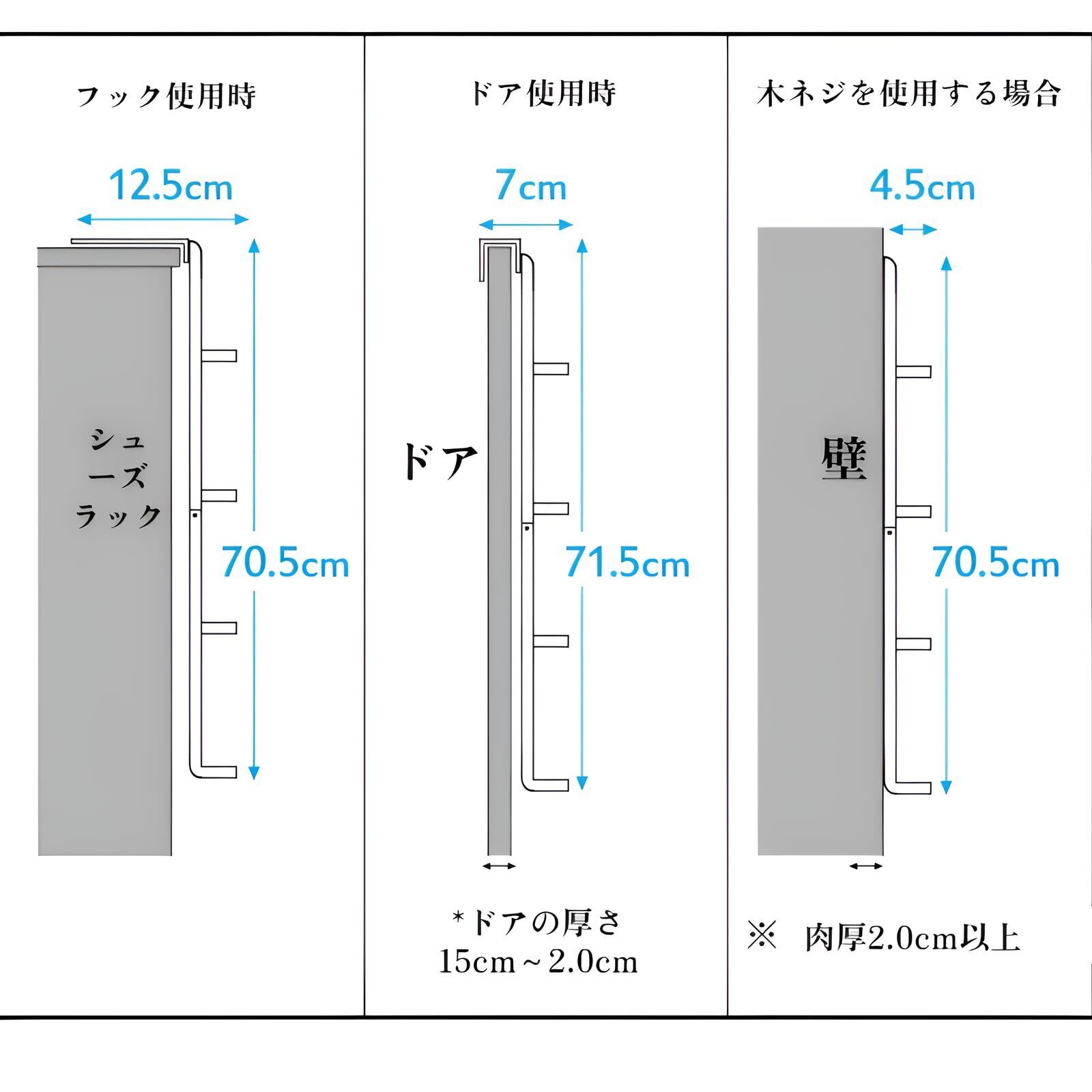 【省スペース設計】このサイド掛けシューズラックは、狭い玄関スペースを有効に活用し、シューズをすっきりと整理します。限られたスペースを最大限に活用するための理想的なソリューションです。