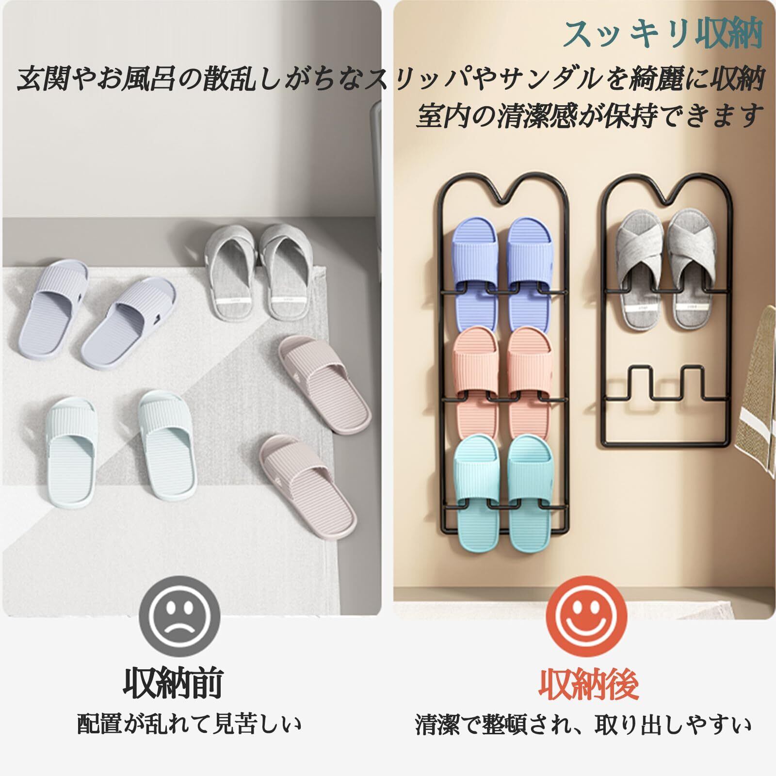 【多機能 スリッパラック】それは居間、寝室、廊下、家の靴、浴室のスリッパに置くことができます。デッドスペースになる壁を有効活用して、すっきりスリムに収納できる。スリッパの収納はもちろん、浴室に取り付けてタオルを掛けてもいいです。