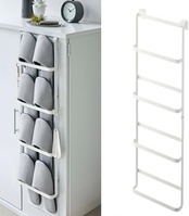 1.【省スペース設計】: この壁掛けスリッパラックは、玄関やバスルーム、寝室などの限られたスペースを有効活用できます。引っ掛け式で取り付けが簡単、穴開け不要で壁を傷つける心配もありません。シンプルデザインでどんなインテリアにもマッチします。