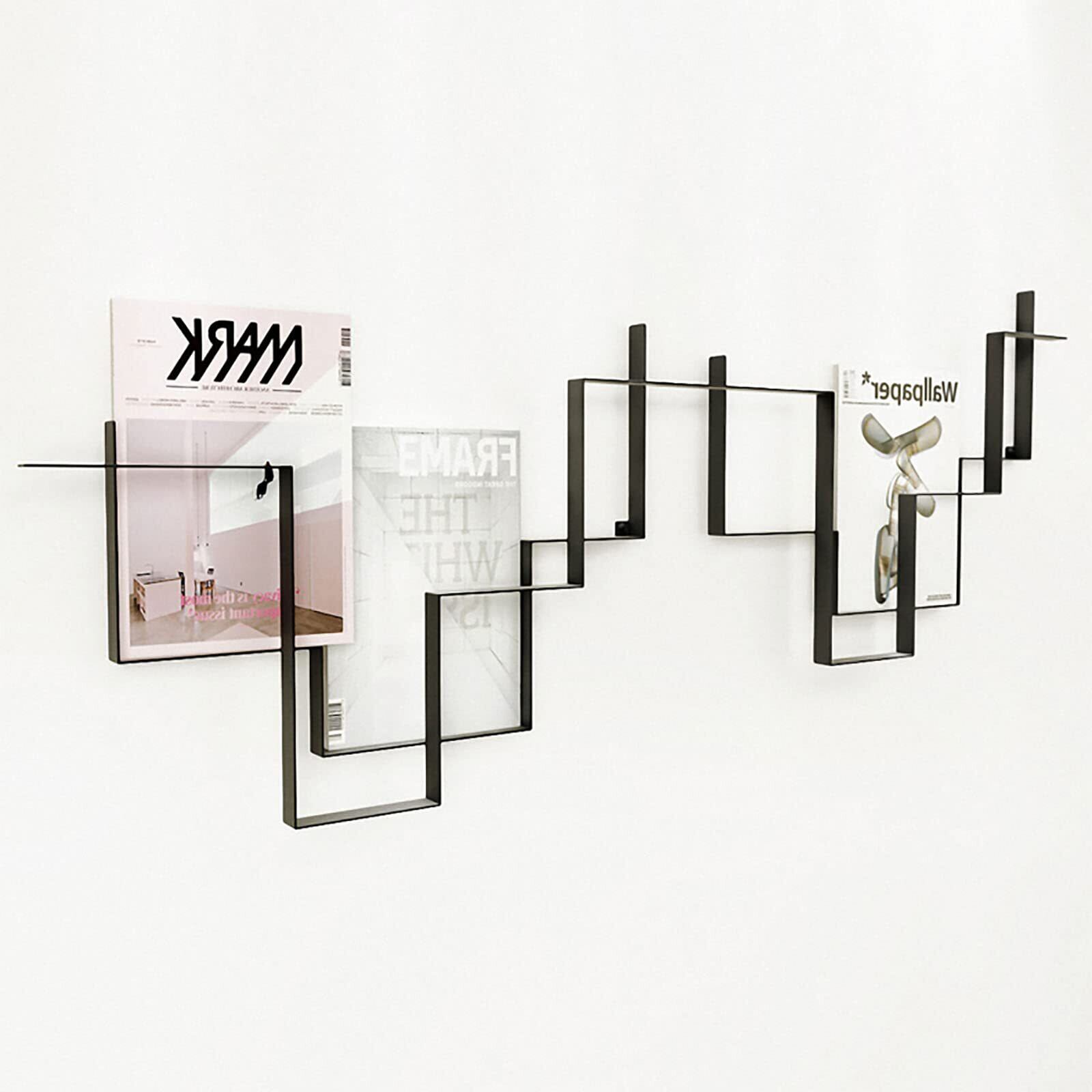 フローティングシェルフ、壁掛け新聞収納棚、マガジンラックウォールマウント、モダンなミニマリストアイアンアートウォール本棚バーコーヒーショップリビングルームマガジンホルダー 黒