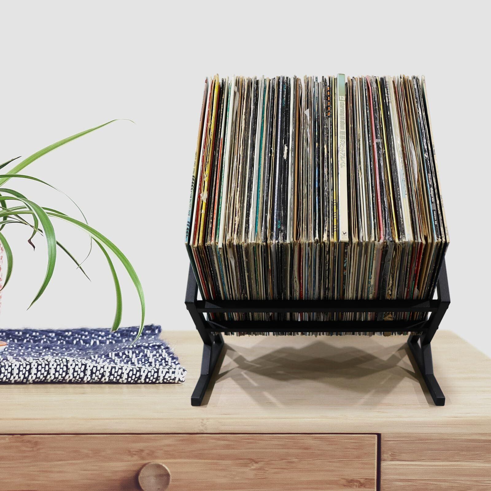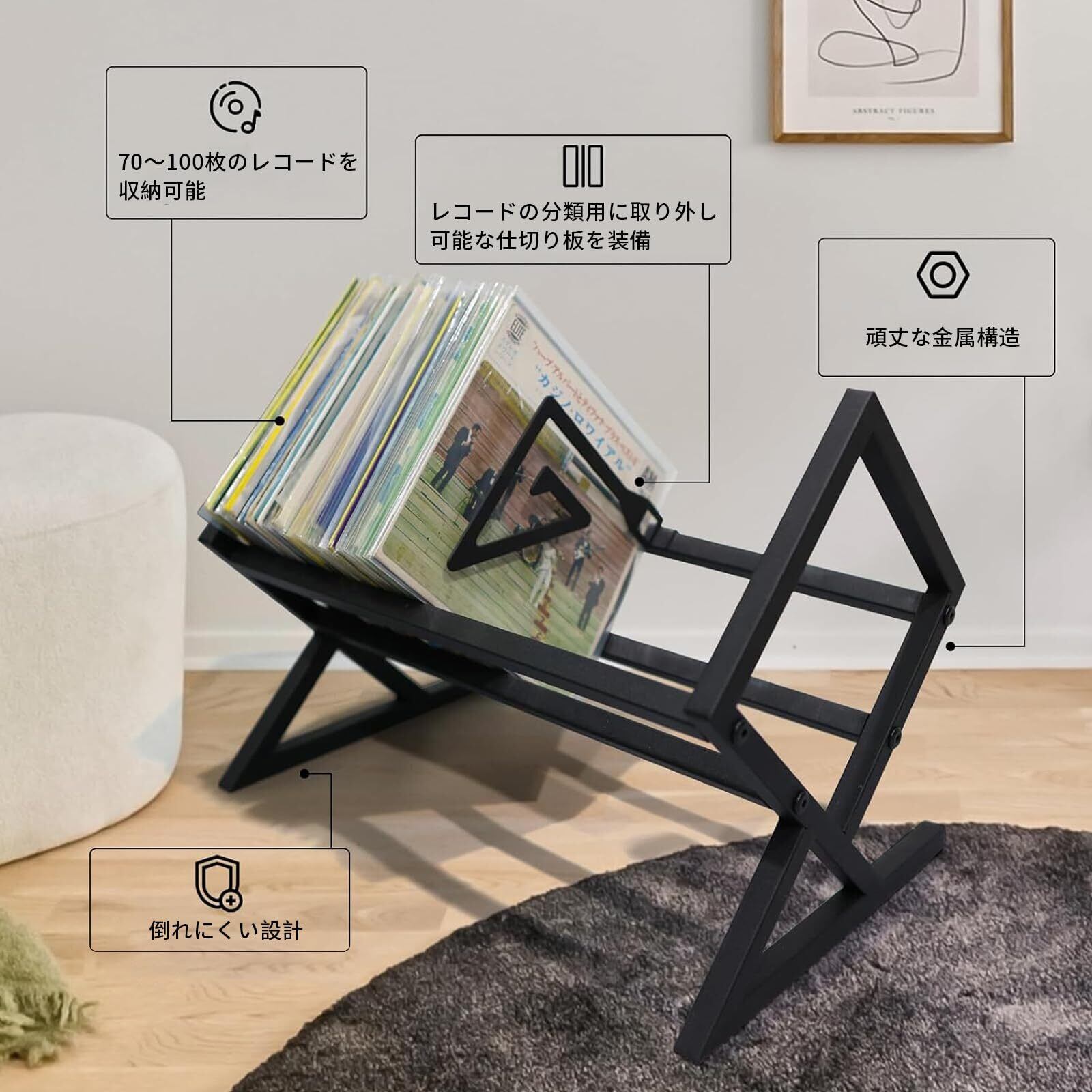 【人気商品】レコード収納ラック レコード棚 LPレコードラック ディスプレイ 絵本ラック マガジンラック アルバム 金属製 ブラック 菱形 60枚LP