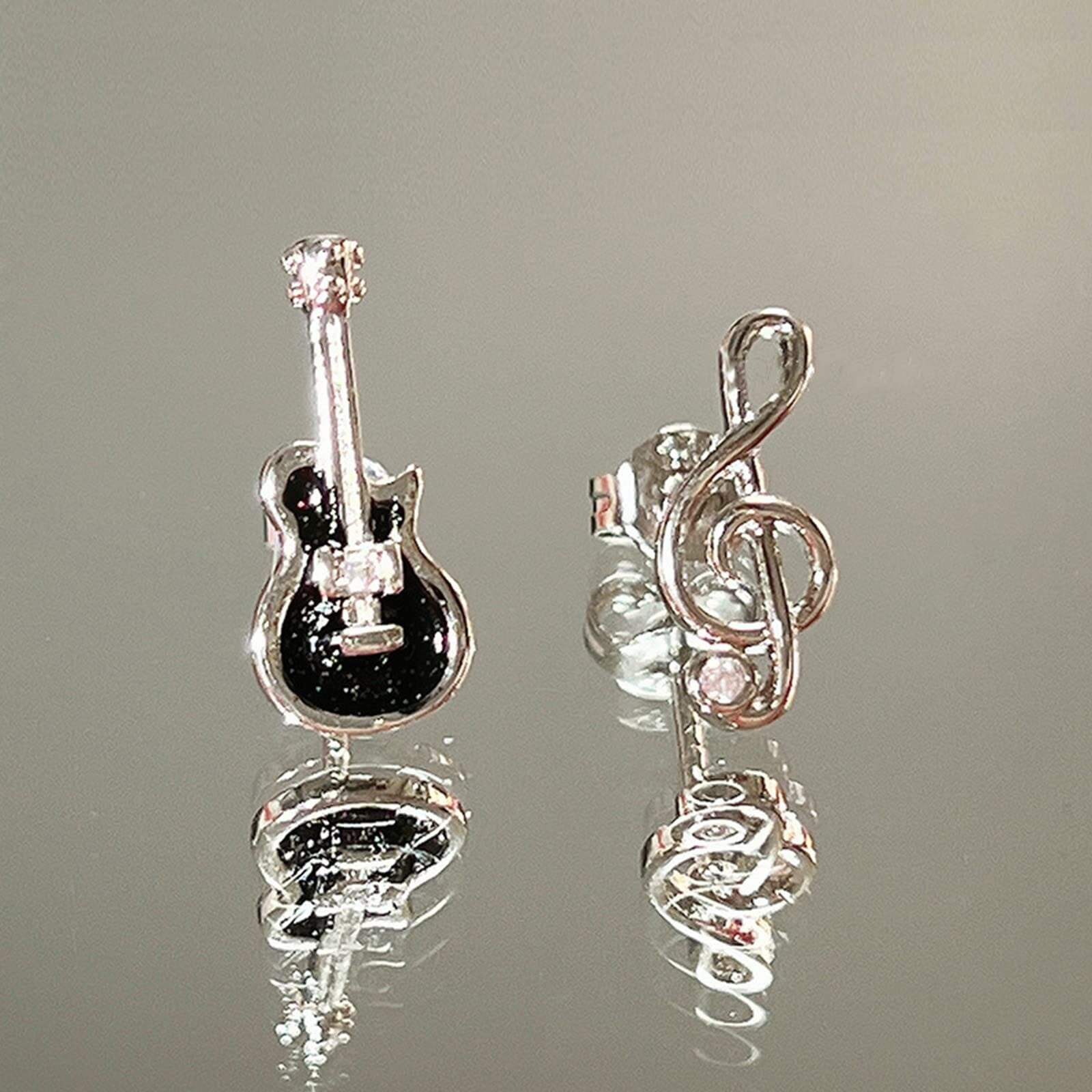 【数量限定】繊細なかわいいギター音符スタッドピアスキュービックジルコニア非対称ピアスイヤリング女性ガールバレンタインデーブラックギターイヤリング