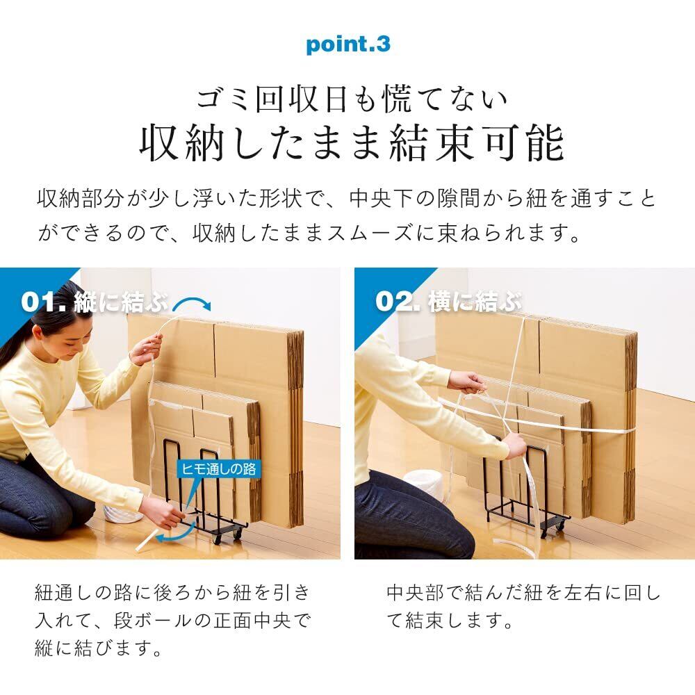 デッドスペースを有効活用しながら、かさばるダンボールをスッキリ収納! 置き場所をとらない横幅スリムタイプ。ダンボールを収納したまま結束可能だから、スムーズにまとめられます。