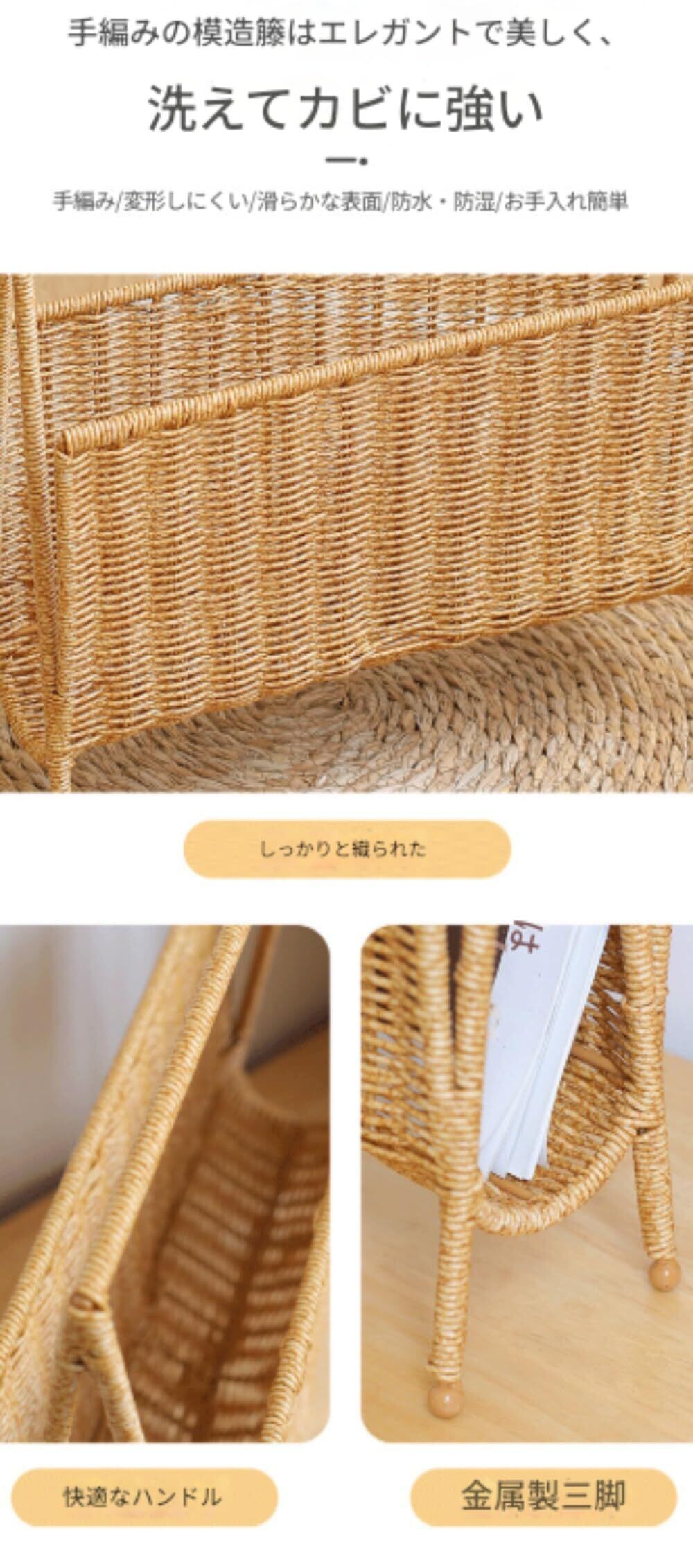このクリエイティブなイミテーションラタン収納ラックは、ナチュラルで素朴なスタイルで、どんな空間も明るく彩ります。B&B、カフェ、リビングルームなど、どんな家にも自然に溶け込み、本、新聞、雑誌にエレガントな雰囲気を添えます。