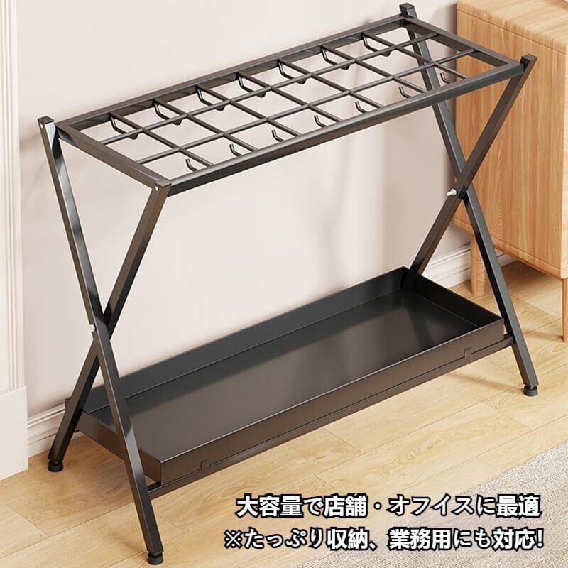 業務用傘立て 大容量 傘28本収納可能 折りたたみ式玄関傘立て ホワイト て フロアスタンド おしゃれ オフィスや店舗で使える 水受けトレー付き W53×D28×H56cm (黒)